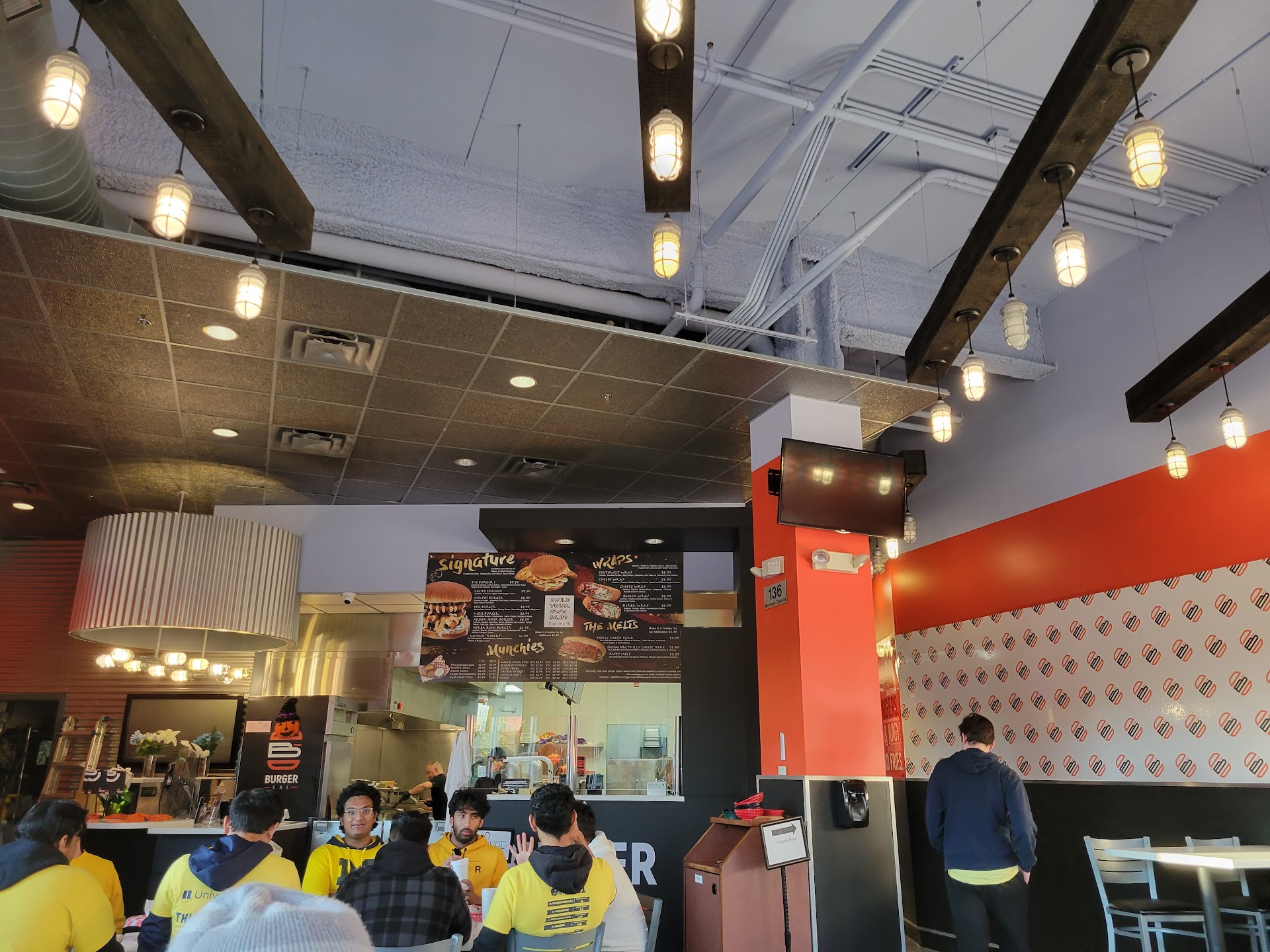 Atmosphere: music brings up the vibes and makes it a casual atmosphere. It was at a good volume and generally seemed to be pop/well known songs. Parking was difficult behind the building, and there seemed to be no outdoor seating. There were a few tables that appeared to be for another shop, but Burger One did not have clearly marked outdoor seating. Additionally, there was no decor on the walls, multiple hanging lights had burnt out bulbs, and most tables were sticky with crumbs and sauces. You couldnât really make any claim that this place had âatmosphereâ or a theme. Are you looking for a spot to take pictures and post to your stories? Donât do it here, basically.