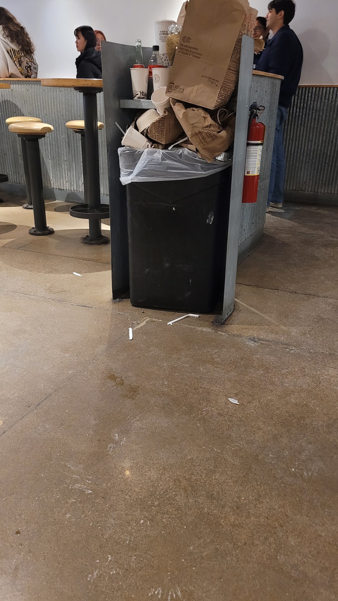 My spouse said he watched a worker empty one of the garbage bins in the dining room and the worker just allowed the plastic utensils to be all over the floor. Earlier, when I tried to grab a fork, it was actually a knife, haha, so all of the utensils were disorganized.