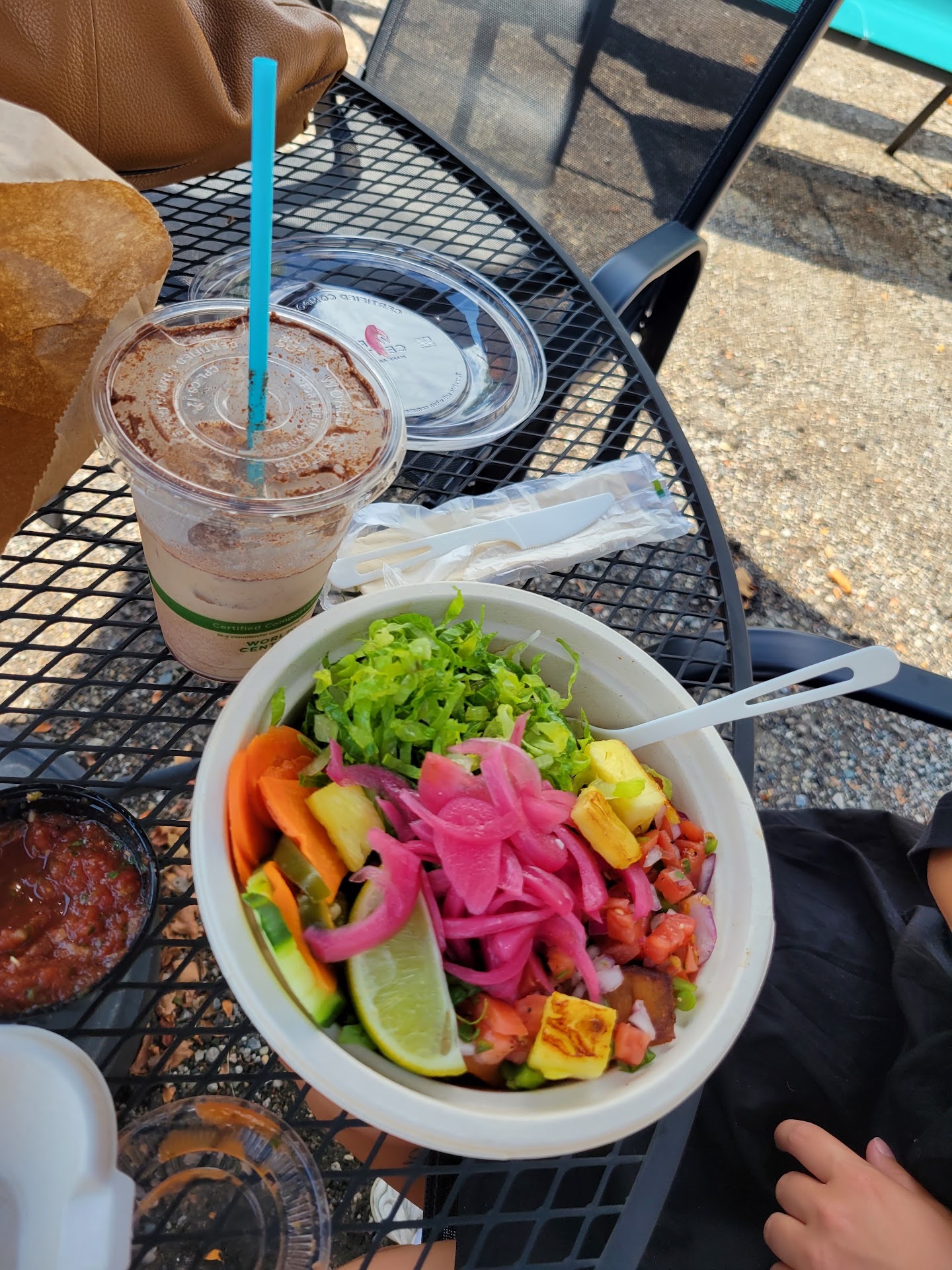 My husband and I visited this locally owned place tonight and let me tell you, between the patrons, staff and Jeff the chef/ possibly the owner, everyone was welcoming and friendly! The environment was very comfortable. The menu had various options. I had the chicken taco special, which was described as (Fresh Hacienda flour tortillas grilled then stuffed with braised chicken, Mexican white cheese and pico de gallo. Served with your choice of side, pickled escabeche, salsa, limes and Mexican crema). My husband had the barbacoa (beef) burrito bowl and very little left overs were left behind. The salsa Verde and fresh were very fresh and flavorful.These meals were packed with color, freshness, flavor and the portions were great, no food was left behind. The ingredients are locally sourced. We also had two speciality (non-alcoholic) drinks (horchata and fresca) both very refreshing and delicious. Jeff checked in on us and we received our dine in food within 10-15 minutes or ordering. Great service. Check this place out, I look forward to...