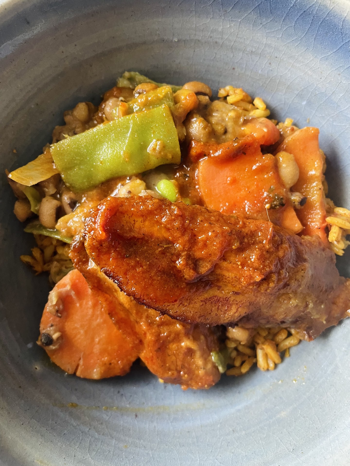 Had the stewed plantains today my husband is Puerto Rican so hardly my first rodeo with plantains but let me tell you these are some of the best and I do mean best plantains I have ever tasted so much flavor it was amazing thou definitely eat them fresh I didn’t care for them warmed up I also got the fufu and egusi soup I loveeeed the soup such a refreshing light soup with a punch of flavor even without adding meat I personally didn’t care for the fufu my husband and daughter loved it I think it was just a texture thing for me. We also got the zobo tea I think it’s called and that was a hit with everyone one definitely a strong unique flavor iv never had anywhere else. Also wait was insanely fast we were told it was gonna be 35 minutes I don’t even think it was 15 we were shocked I had set a timer and next thing I know the gentleman who took our order brought it right to our car. Well worth the...