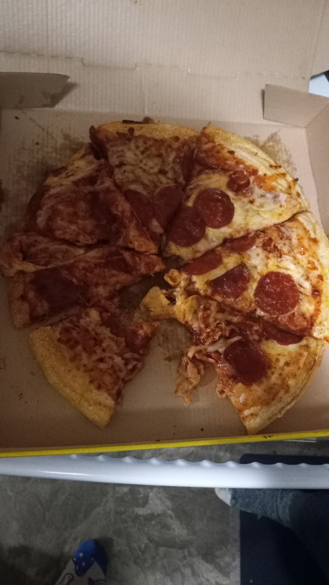 Read moreI've ordered from here before with mixed experiences, usually deliveries being very late. Recently I ordered a delivery and after taking twice as long as it was suppose to, the tracker said it was delivered...it wasn't. I called the store and they called the driver who said he delivered it and handed the pizza to whomever answered the door. He obviously delivered it to the wrong address. Whoever I was talking to on the phone didn't seem to believe me, however, and kept saying the driver delivered it "to the address" and I had to keep correcting him that he in fact did not. I canceled the order as it was too late to get a replacement (on my end), bit I did order a pizza the next day...this time I picked up at curbside. I clicked on "I'm here" on the app and gave a description of my truck. I watched someone come out to a "car", then take the pizza back inside. After a while I called them and asked if they received my notice that I was there (I think they did and the pizza they tried to give the car was probably mine). They said, oh we'll bring it right out (meaning it has been ready and was sitting under the heat lamps). I watched someone come out and try to give it to a car again (my trucks description was on the ticket). When the car refused it the guy looked confused and didn't know what to do until I yelled out my truck window. Btw, that pizza gave me food poisoning. I am never eating at Hungry...