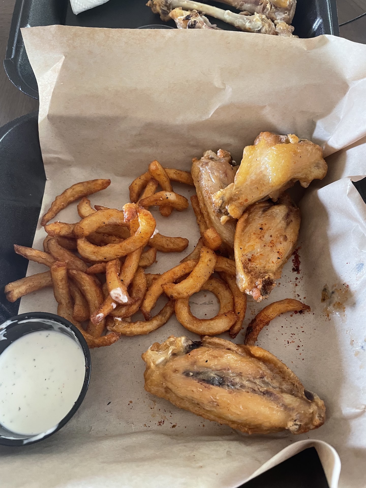 Wings are great for the price. Ordered here plenty of times and there are Plenty of sauces to choose from but when I ordered Parmesan garlic, it appeared to be a dry rub and not much on the wings. I wouldn’t recommend that sauce. They tend to go light on the sauce and you are guaranteed to get a couple wings without sauce sadly. Another thing to note, be sure to pick the order up right away otherwise the wings and fries will be cold when you get it. It doesn’t appear that they put it on a heater to keep warm when...