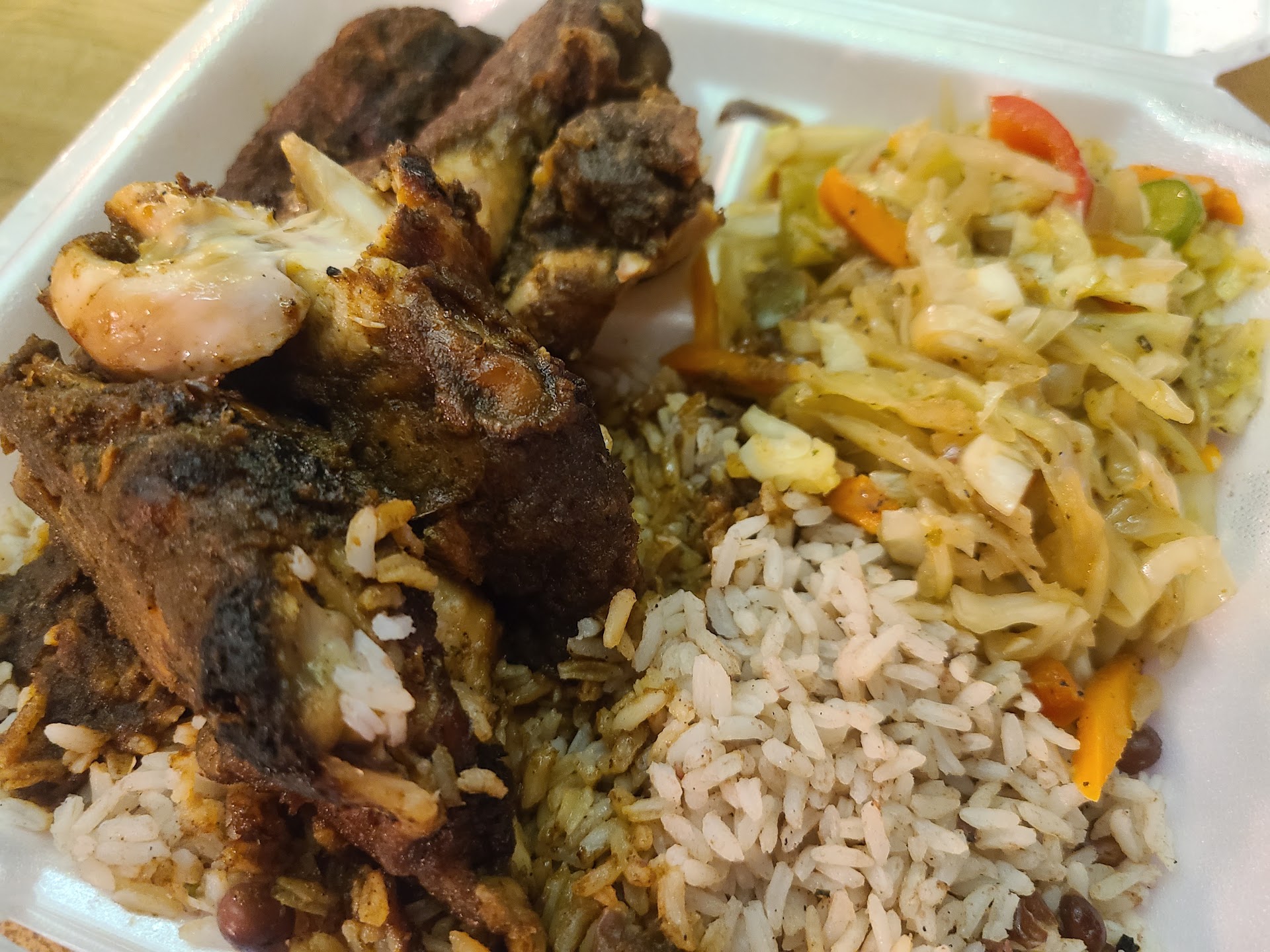 The anticipation was met with let down and extreme disappointment..The combo plate I ordered was mild and devoid of any heat. Though it's generally expected take-out portions are smaller, mine was very much so with the proteins being maybe a tablespoon serving of each in the small sections of the styrofoam container and the rice and peas being the majority of the plate served in the larger faction of the three part plate. But the worst problem was, that it was EXTREMELY SALTY! With the first taste, the vision of someone taking a big popcorn salt shaker dispenser to the goat portion came to mind! It was inedible to the point of triggering anger since I had my mouth so set for that goat. It was also mild rather than the medium heat I'd opted for this time. The beef patties were very greasy but then, beef patties usually are in my past experiences but I've also tasted much crispier crusts and one patty was notably spicier than the other. Hubby was also thoroughly disappointed. His order had NO HEAT at all. It was mild at best whereas at the restaurant, the spicy heat caused his eyes and nose to water-a desired and good thing for his palate.