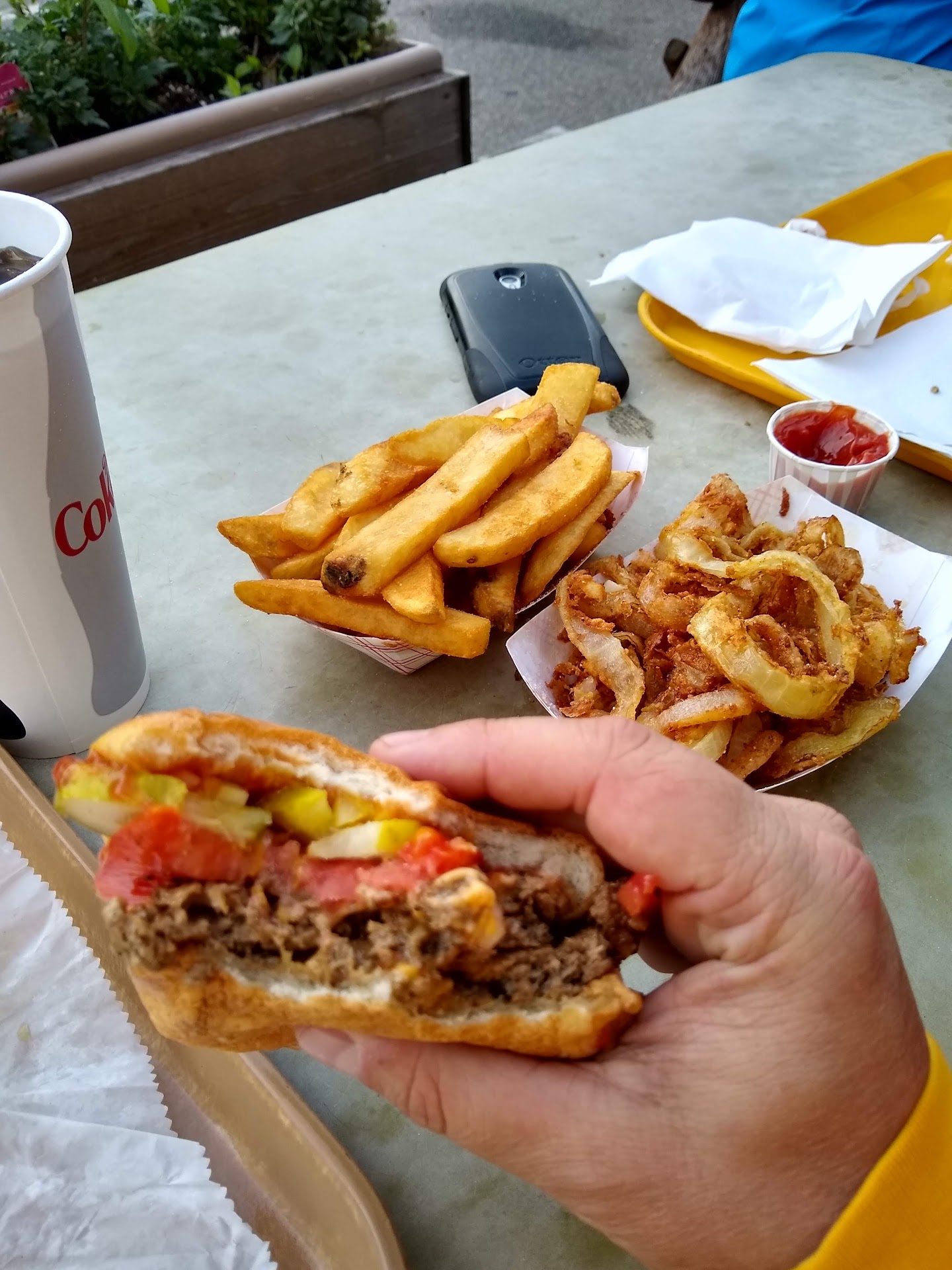 I am going to pull most of my review from my last visit because my first was at the old location. The first thing I noted upon my return was the snappy attitudes of the cooks behind the counter. Now, I personally did not mind the biting personalities as I'm sure others might not either. It adds a little bit of authentic flare to the place. However, I must warn people who are sensitive or easily offended because it could otherwise be very off-putting. As for the food itself, the star is and has always been the burgers, and I must say that I was... a bit underwhelmed this time around. I got the double, but I found the flavor of the patty to be a bit bland compared to other burger joints. The quality of the rest of the ingredients was delicious if not standard. We also tried the fried vegetables and the french fries. Okay, I know they call them "potatoes", but we all know that they are home-style fries. I digress. The fries themselves were quite good. Nothing mind-blowing, but then I don't think I've ever had french fries anywhere that redefine what a good french fry is. The fried vegetables, at least on my last visit, didn't seem to have much batter over them, at least not as much as I remember from the first. I will give the benefit of the doubt and say that there is likely a bit of variation, not unlike trying to deep fry something in your own kitchen.