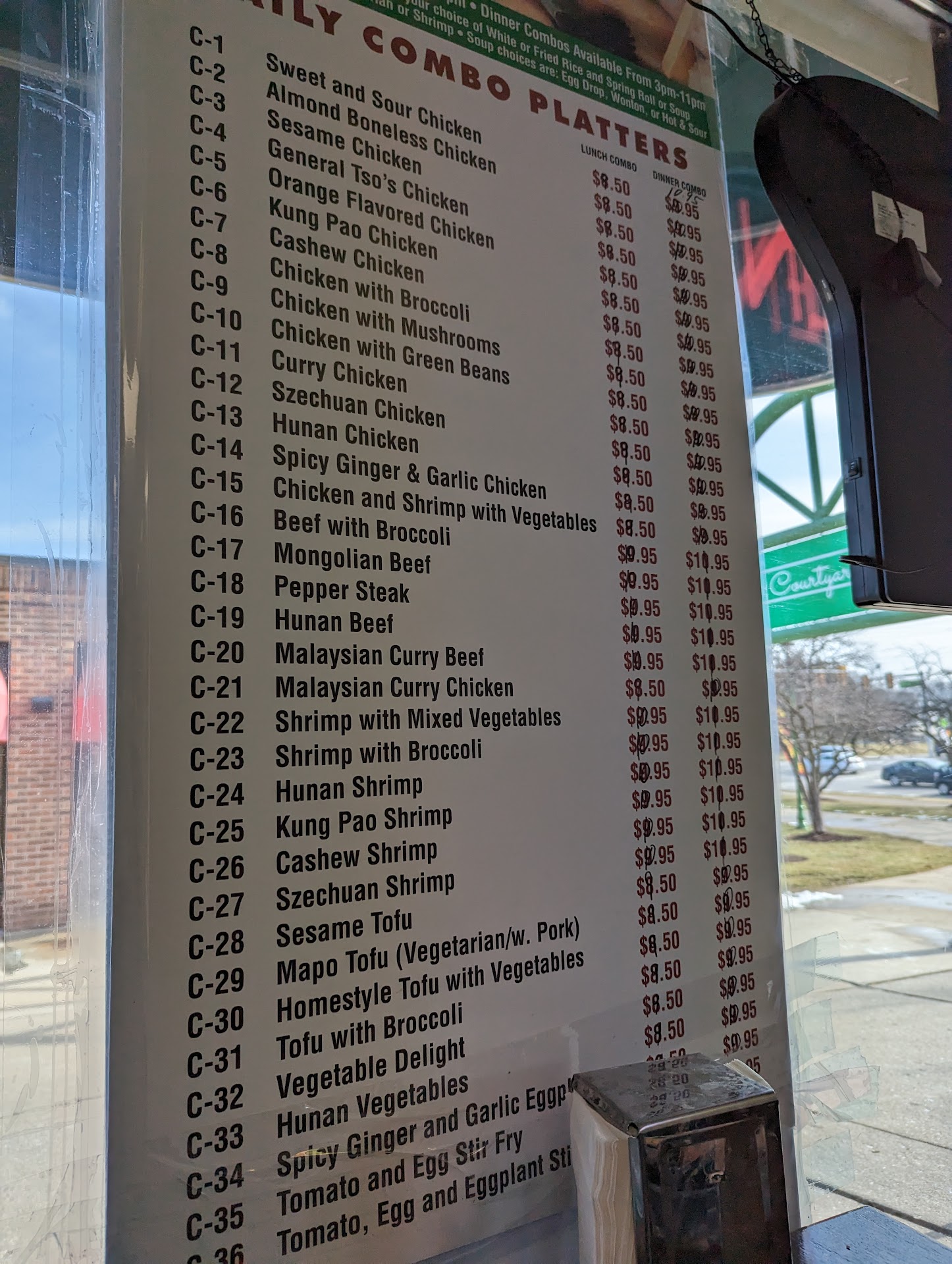 This is the longest review I've ever written. And there's a good reason for it. Second time eating here. The food is what you would expect of basic chinese takeout. Nothing more, nothing less. But what earned this establishment a 1 star rating from me is the employees conduct. If I enter a restaurant and one of the employees stops dead in his tracks and stares at me with a look of shock for I kid you not, a solid 5 seconds, then never says anything, but continues to sweep while watching me the entire time... I know that look... as a POC, who came in to pick up an order close to closing, he thought I was menacing. (I already placed my order by phone before arriving) I was extremely uncomfortable, put-off and more than slightly annoyed. But because the location is so convenient, I decided to give them another try. This time, I ordered before 730 PM, No other customers and again was subjected to subpar service. I stood at the counter for 15 seconds waiting for one of the 2 staff to turn around and acknowledge me. The goth guy with the overdyed black hair finally turned around and said "what can I get you?" Not "sorry for the wait", not "hi, hello, how are you". And he seemed annoyed imo. So I give him my order, he gives me my total and I'm a penny short. I ask him if he has a penny and his reply is "uh no", while shaking his head. Ok, no problem. I give him another dollar and get back change. But it's what happens next that really cemented for me that I will never eat here again. After he gives me my change, he walks away and then throws my bag of crispy chips on the counter, proceeds to put my wonton soup in the container, after handling the dirty money, did not wash his hands and brings back the bag, sets it on the counter without one single word! Not nothing! Not thank you, come again, nothing! Then walks away. If you are a POC then you know exactly what I'm talking. If not, trust me when I tell you, this was racially motivated, prejudicial behavior in my opinion. A smart business model is to see the color of money, not...