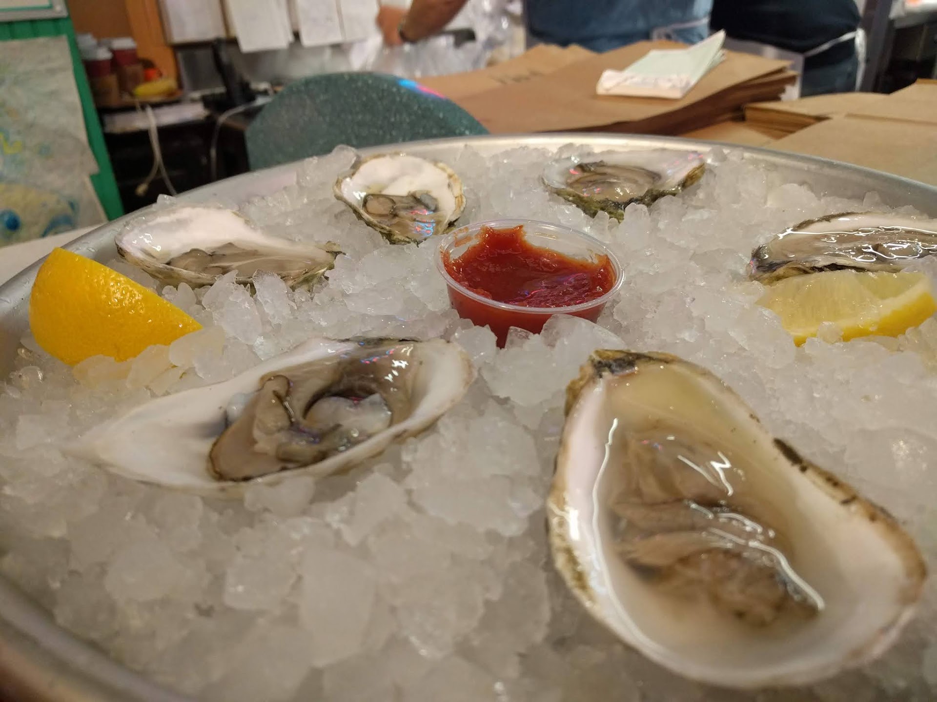 Opted for steamed little neck clams instead of shucked oysters. Fresh zingermens thick slices of bread to soak up the wine clam...