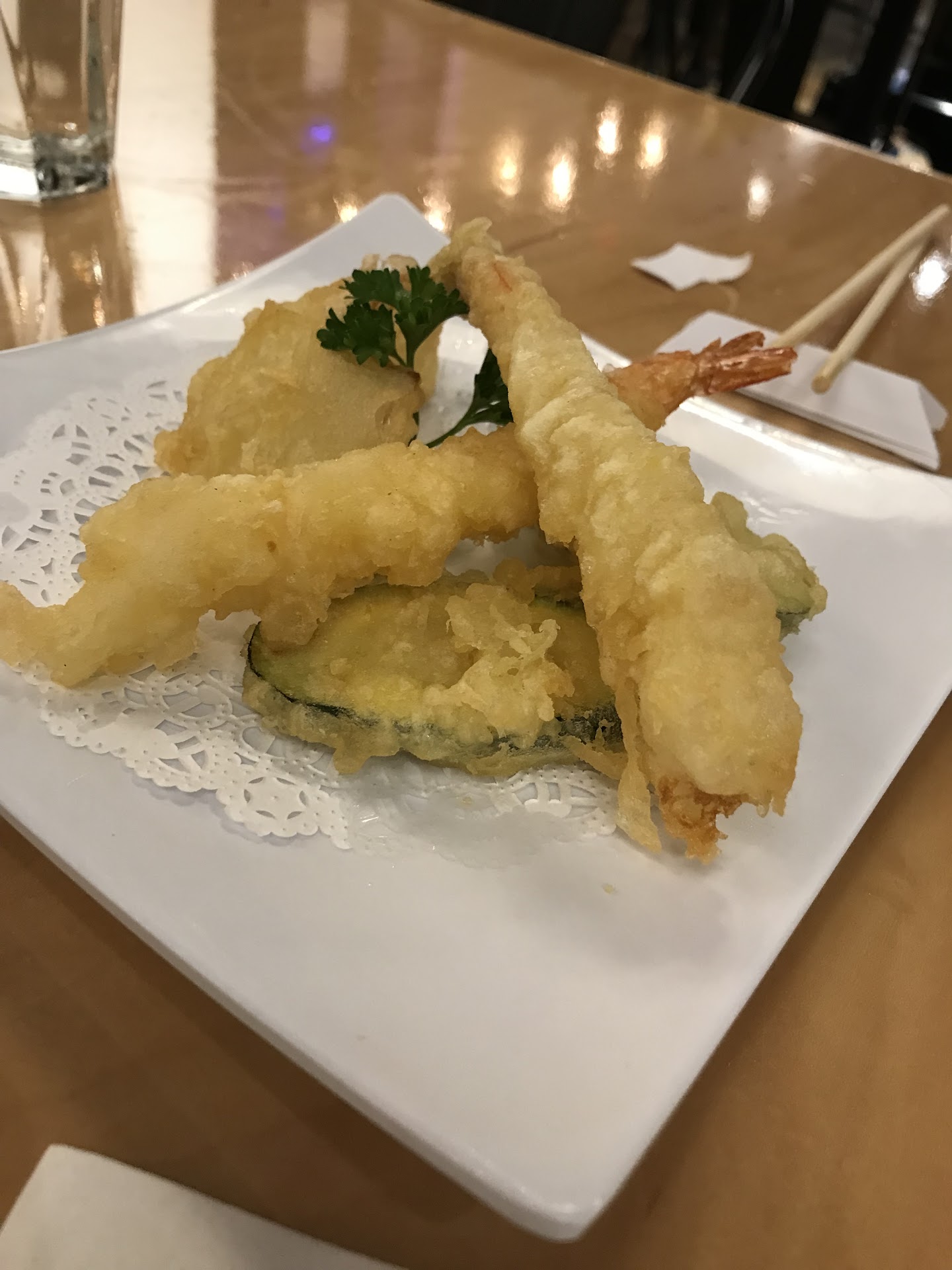 We went on a Monday night and we ordered the Veggie and Shrimp tempura as an appetizer. This tempura was AWESOME, the veggies were perfectly cooked and the shrimp was still incredibly juicy. (shrimp tempura usually dries out so easily) The sauce that came with the tempura was beautiful and complimented the tempura perfectly. Then we ordered 4 rolls to try: Yellowfin Scallion roll, Salmon Avocado roll, Caterpillar roll, and the Tokyo roll. The more simple rolls were a great break from the more complex flavors of the more complex rolls, and all the fish was tender and delish. The Tokyo roll was a bit large but most definitely worth the challenge of fitting the bites into your mouth because the flavors and textures were perfect together.I cannot speak highly enough of the quality ingredients they use. The food was altogether perfection!!
