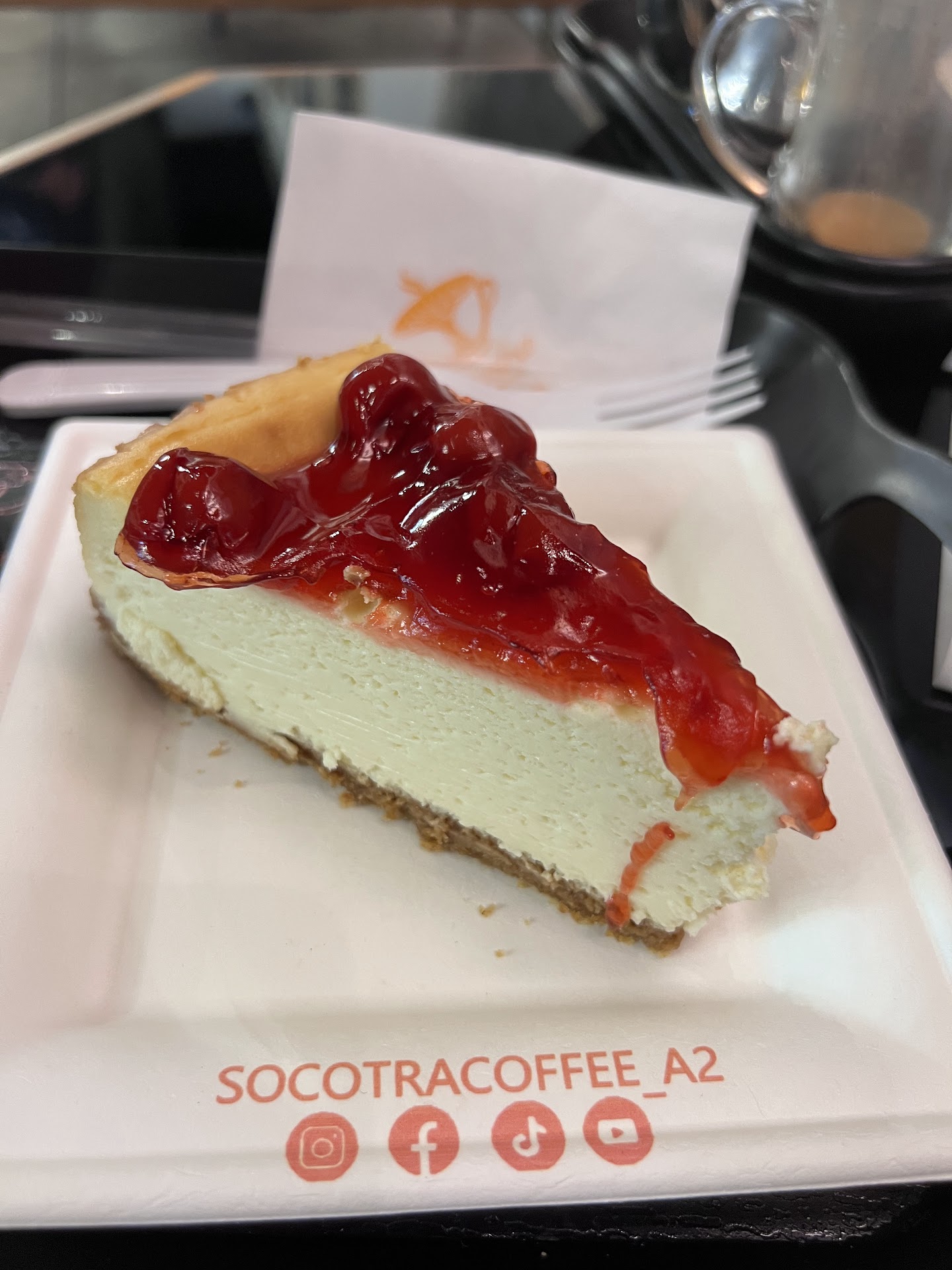 Vibes: The chairs are lightly padded, and comfortable, and there is some couch seating as well. There is also outdoor seating. There’s a large mural on the wall, and some interesting facts about the island of Socotra, and a large image of the iconic Socotra dragon tree.