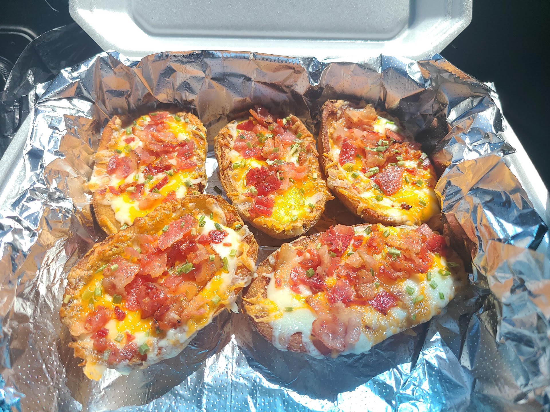Had the potato skins and WOW! I was expecting them to be the frozen kind that little hole-in-the-walls typically have but NO! They were homemade, fresh and delightful! Also had a chicken sandwich which I ended up saving and eating the other half as a midnight snack and yum, their bread wasn't even soggy I was shocked. Definitely will be going back, super tasty chicken!!!