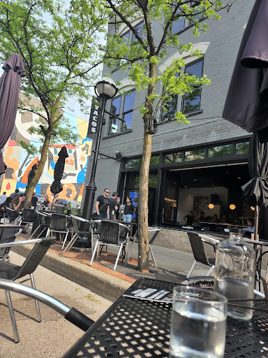 Service is quick, attentive and very friendly. The ambiance is modern with a clean interior, with a tv over the bar playing the game if you want to keep up, but not as invasively as at many restaurants. Music is contemporary and energetic without being overwhelming - it’s never too loud here for good conversation. Outdoor seating is pleasant and very welcoming to polite dogs!