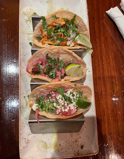 Read moreMy husband and I were in the city for the afternoon and we kept smelling the delicious smells from the parking garage, and after asking where the yummy scent was coming from, we were told to head over to Tios Mexican Cafe. I remembered this place in college but I don't think I ever actually ate there, so I was excited to give it a try. It was a seat yourself situation being in the middle of the day on a Monday, and we sat down. We were greeted by a friendly woman who asked if we wanted anything to drink and then we never saw her again. We waited close to 10 minutes for someone else to come over to us to take our order and when he did, he was very nice. My husband had to get back to work and we were hoping for a quicker lunch, but that clearly wasn't going to happen. We waited for a while, probably close to 30 minutes for our food. And we were easily one of 3 couples in the entire restaurant. No reason it should have taken that long, given the lack of patrons. We both ordered beef chimichangas and a side of mexican rice. He also ordered fried plantains for us to share. The chimichanga was far too watery. When I cut into it, juices seeped from it. Also, a high content of beans, and not enough of the other things. It also had hints of nutmeg in it, which was odd to me and I didn't like. The rice, it had lots of stewed tomatoes in it, which I get can be part of mexican rice, but I didn't love them, also, it was overcooked and kind of mushy. The fried plantains were not what I was expecting. I anticipated fried-in-a-pan type plantain, not breaded and fried plantain. Which was super odd. All in all, not bad, but not great either, and probably will never go back. The decor in the place was quite nice though. There is a big blue sky with white clouds in the center and very spanish looking orange tiles with cobalt blue and emerald tiles. They have an array of hot sauces displayed as well for sale, for gifting, or for yourself, and they all have very clever, punny names. I enjoyed the warmth of the place and wished I liked...