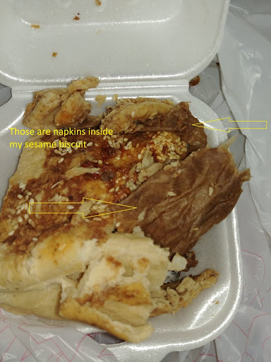 I've been coming here off and on for over 10 years. Over the years there's been some issues here and there which is common as no ones perfect. But it's how you handle those situations that truly matter and separates you from the rest. The way the staff handled this past issue was the nail in the coffin. After taking my to go order home. I took a bite of the sesame pork biscuit, as I was chewing it tasted off, like cardboard. I spit it out and opened the biscuit to find napkins inside. I understand things happen but this was done on purpose! Who knows where those napkins have been which is what goes in your mind after something like that.