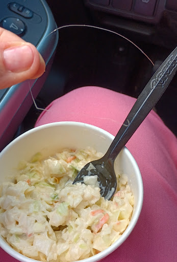 My friend and I ate our food and he left before me. I threw out my trash and I left my full soda cup and a small box with my leftovers on my table while I went to the restroom. Ahmed, I am not in the habit of taking my drink and leftovers into the restroom with me because I think that's pretty gross.