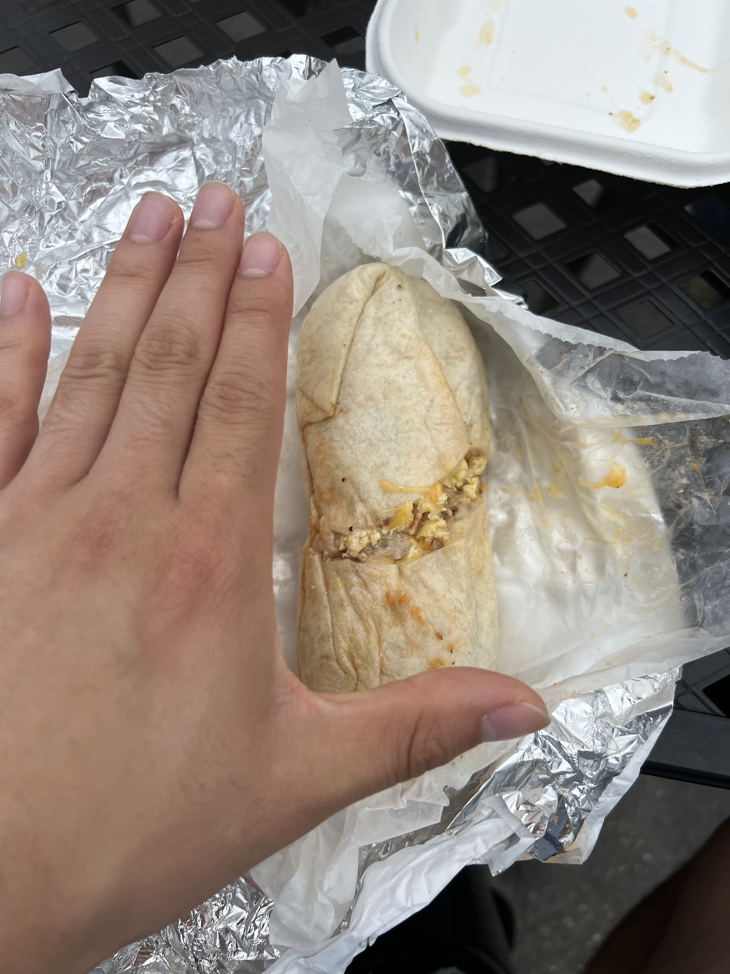 The Burrito (7/10): I got this with both bacon and sausage. I thought it was cool that they made their own sausage here, but in my honest opinion it tasted like regular sausage that you'd buy at a grocery store. The first thing that I really found disappointing was the size of the burrito. I could eat two of these. They had good filling, but was disappointed in the size. I think the taste wasn't too bad. Mine had practically no salsa. There was just nothing really special with this burrito.