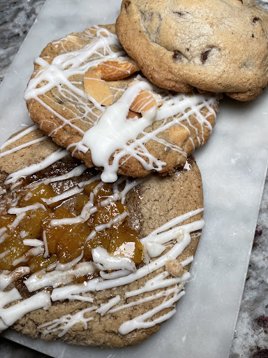 Peach Cobbler-STAMP!! A peach cobbler cookie perfected!! . Customer Service: On Point . Online Navigation: Easy . Parking: DECENT. . Recommendations: Those Cheesecake Jarâs & Cupâs, & The Specialty cookies. . Music:YouTube-Backyard Band Socket