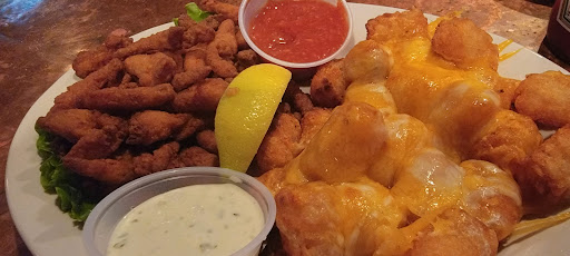 We were seated about 15 minutes as previously said. My husband ordered cheesy tater tots and fried clams as a appetizer. The clams were fried way too hard. Now grant it, this is a pub so I don't expect Ruth Chris level food but I don't think they should sell clams if it's not at least decent. Long John Silver's clams are better. We ordered 2 cheeseburgers, they were just okay for us.
