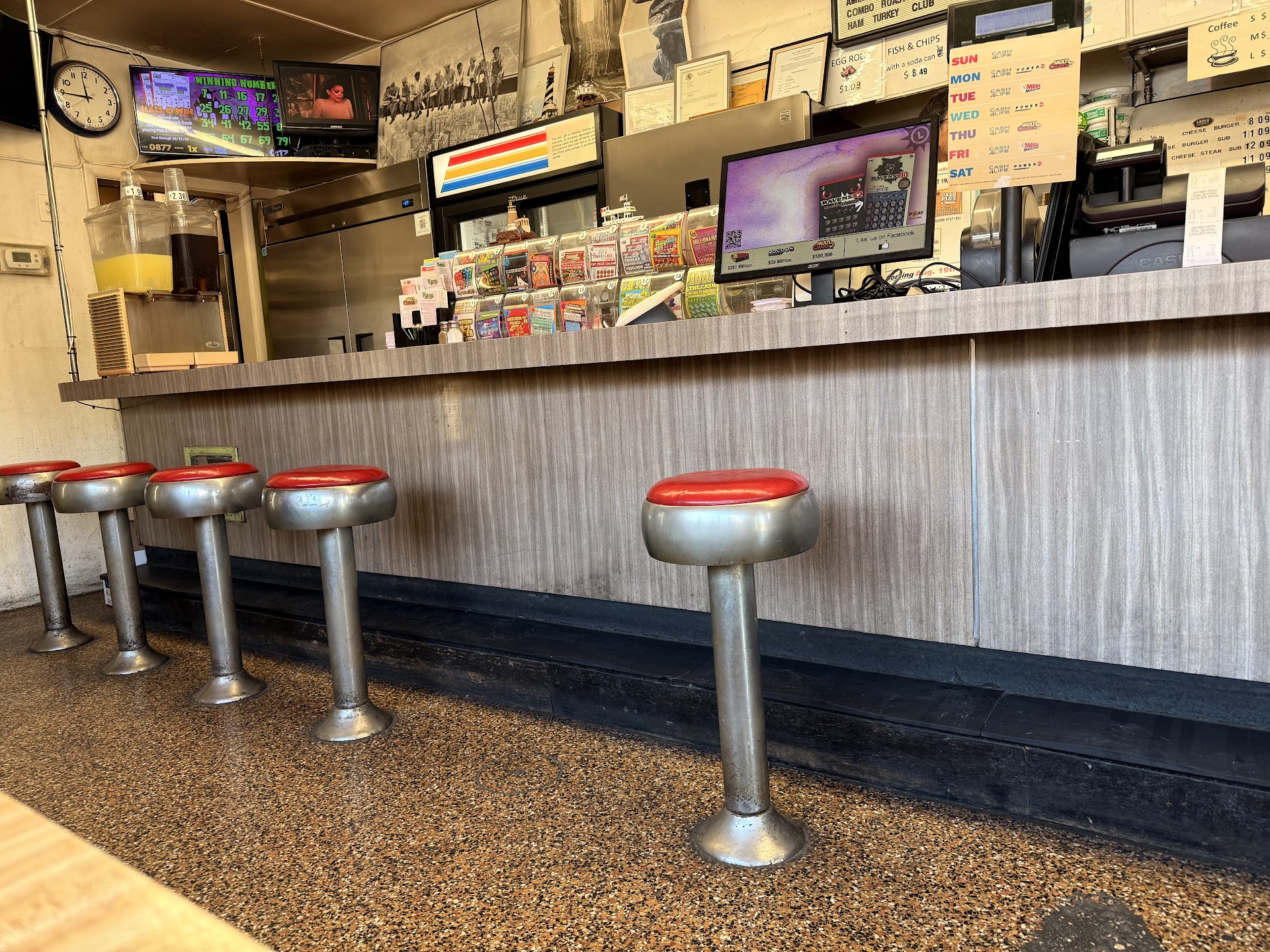 Deli sandwiches, dogs & other comfort eats are served at this no–frills spot with a simple interior.