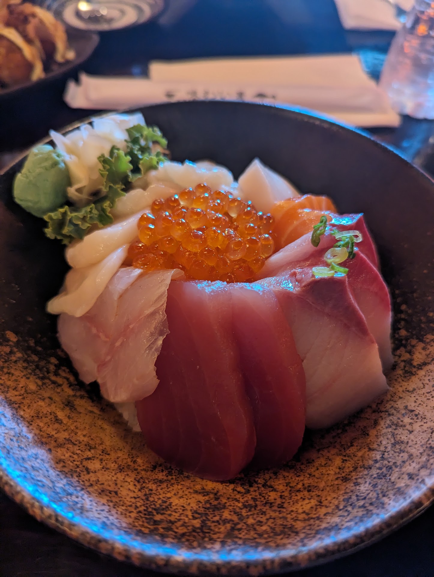 We also tried the Takoyaki - good flavor but we couldn’t finish it after all the sushi and ramen. They also gave us a little dessert; a Mocha Cheesecake ? - light coffee / cocoa flavor, a little sweet, with some chocolate sauce drizzled on top and a strawberry on the side; a perfect ending to a lovely meal.