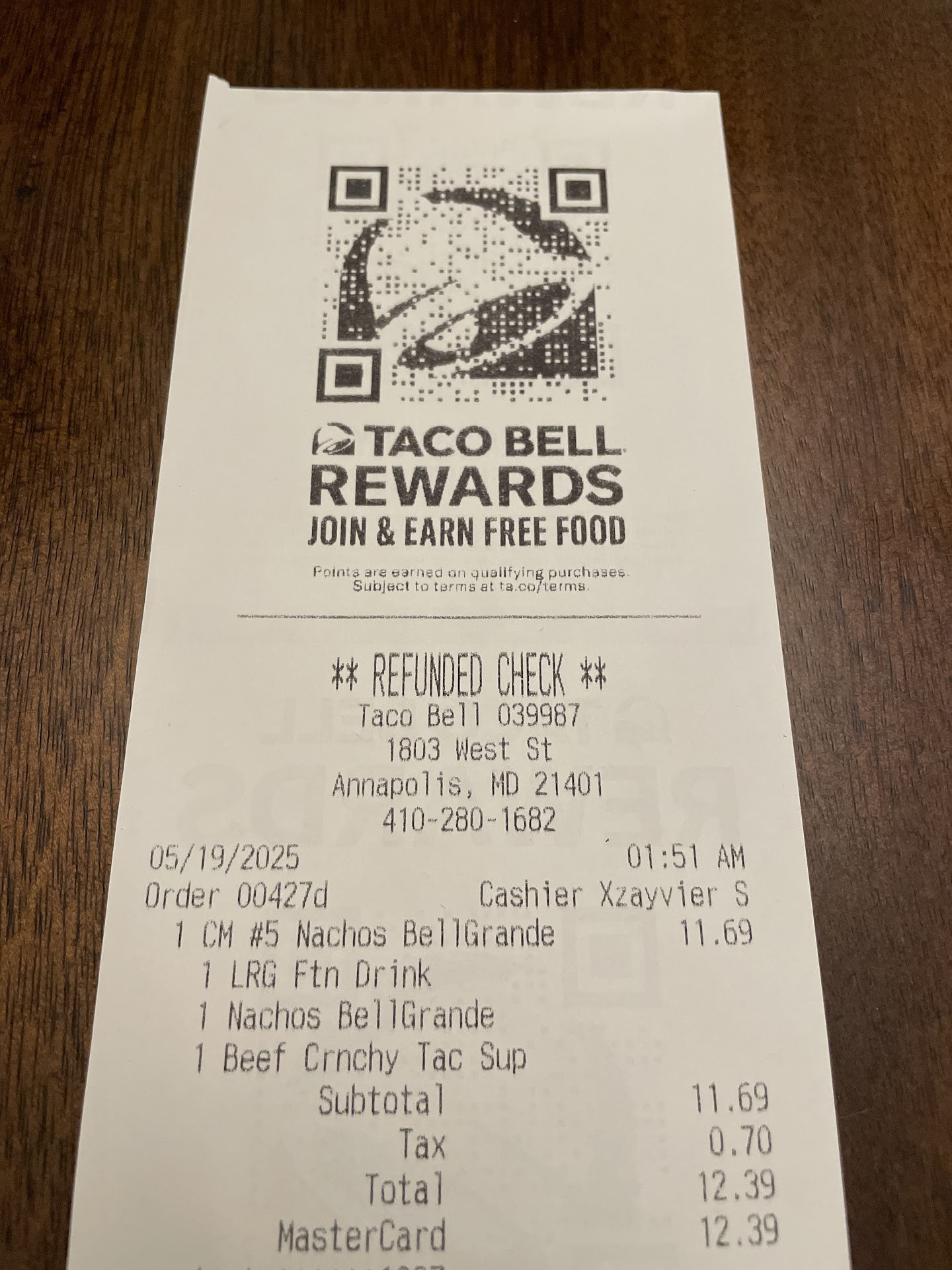 Now the latest, the triple double crunchwrap supreme. When I went to order, I was told that they were out of this product, yet still advertising it on their ordering menu (poor choice 1). I asked if they had regular crunchwraps and was told "no" (which I later found out to be a lie). According to Sydney, the supervisor on duty, this promotion ends on Wednesday (it's Sunday). The warehouse has run out of the special tostada needed for this crunchwrap. I can understand this. When I asked when they would be getting the regular crunchwrap back, I was told that they were not out of the regular crunchwrap. When I told her I was told otherwise and left, she said that the other girl was just "new."