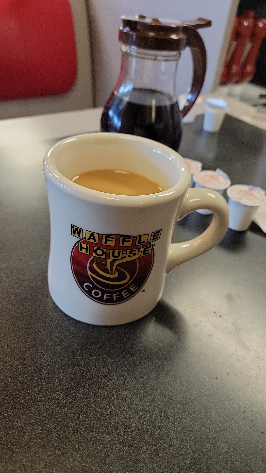Read moreBeen coming to this waffle house my whole life. Im not real sure the age of most the servers now..and I dont care. See. Why I gotta be a Karen just because u dont feel like cleaning the tiny table aka swiping a dirty rag over it looking at me like what u dont wanna sit by the bathroom with your toddler ? No. KAREN , actually that makes you the type that complains because yall complain about more pay while being real weird to potential customers about things we prefer that JUST MAKE SENSE. like how bout actually also the smaller one keeps my son from running around And siting by a door wafting out..smells.. isnt appetizing .. then just bc I order a damn water bottle cuz its easier to pour..after never wiping off the table a guy gave us cuz he was done and wiped it..I cant hold my 42 lb kid for that long sorry lol...so imma sit. Also.. took 20 mins then comes over like its busy apologizing . Nah. ..more 0 tops than anyone .. one other max 3 top and some 2 and 1s.. that was it. So she all.. why u need a water bottle ..u cant have tap? Mind you. Im with my toddler also my RAMEN NOODLE TEE If u aren't prepared to grab a dasani.. dont work at waffle house. MAKING me feel like im acting like royalty or sm..bc its easier to pour with the water in his cup and can take it to go..and would potentionally get u more tips.. but ain't nobody ever Wana just say ok" anymore I guess the Ramen shirt really threw off the waffle house waitress. I mean i ain't never felt so