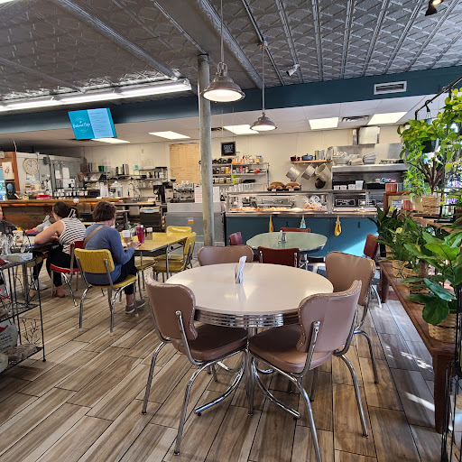 So happy I asked Google Maps to show me a coffee shop in Anoka that wasn't part of a chain. Oakwood Cafe is family owned, it is a beautiful combination gift shop, floral shop and sandwich coffee shop. I arrived just before 10:00 a.m. and there were several small groups enjoying coffee and conversation there. There are 4 retro 1950's tables that can accommodate up to six guests apiece, and then a long counter at the front window with high top chairs fit a single or deuce. Ordered a strawberry lemon scone, the flavor was not as strong as I would have liked but the texture was great. With that a nice latte and I was able to spend time looking over the handmade gifts, wonderful collection of cards for all occasions, at a florist putting together bouquets and perused large collection of house plants for sale, too! I really enjoyed a quiet moment here we're heading out for my busy day. I would definitely returned with a friend because this place does not have loud music and it's...