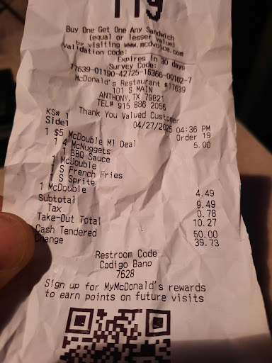 Read morePlaced my order through the kiosk, and it took 20 minutes to get my order. The staff here don't care how long it takes to get your order. They just tell you to wait and blow you off, hoping you'll just go away. Thendining area was very dirty, and no one working seemed to care. If they don't want people to dine in, they should just lock the doors. Service here is terrible. Once I got my order, it was missing pancakes, which took another 10 minutes. Food also was cold. This is not a good place to expect service from the people working there. They act like they're doing you a favor. You ask someone for something, and they pretend they don't hear you. I will never...