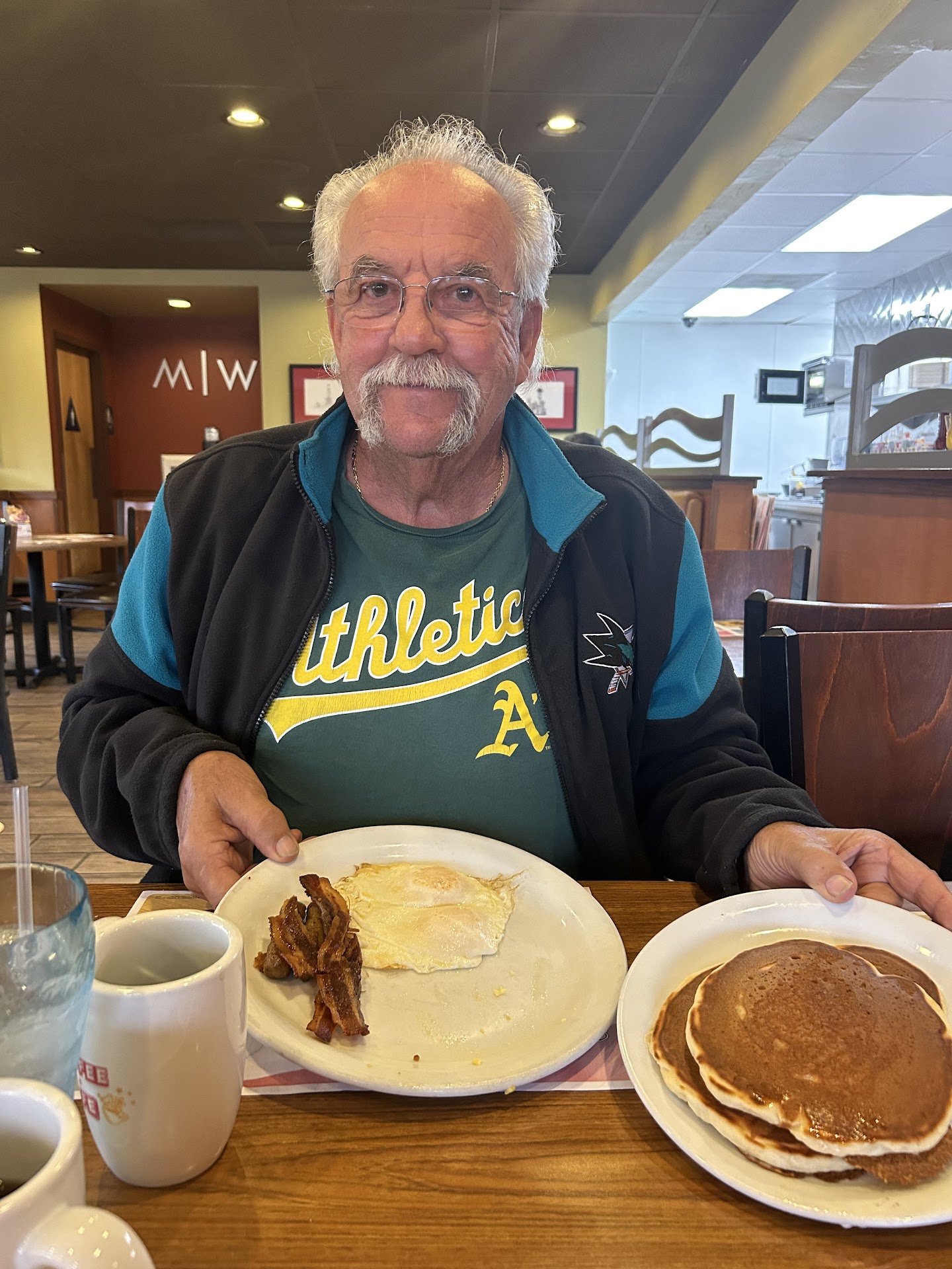 Read moreNever again, they reminded me why Mel's succeed right behind them. They get one star only cause thats the lowest. Where do I start the cook microwaved old pancakes for my son's jr. Grand slam... Or the dry pot roast melt well, I ordered via phone I repeated my order many MANY TIMES. I get there my Jr. Grand slam has a tiny syrup cup of grapes as the fruit side, no pancakes, then I stated on the phone I request pancakes The Jr. Grand Slam. I watch her walk to the cook counter tell her they needed pancakes she (cook) grabbed a plate opened the microwave, start it, I told my son she microwaved pancakes people don't pay for microwaved pancakes I thought they cooked them. She took the pancakes out the microwave shook it steamy and hot into a to go container. The waitress took them from her and brought it to me (mind you she saw her). I asked you guys don't freshly cook pancakes you microwave? She said no, I said but she just microwaved those from a plate, OH, then go back to the cook saying she saw you microwave the pancakes. Okay I check my order now while waiting I ordered a pot roast melt OLD what sandwich was in my bag something with bacon and Turkey??? The waitress was so lost asking did I order right ummm yes... the guy confirmed they were making it 10 minutes after I was handed the wrong food!?! Get the food get home the sandwich so dry the meat is horrible. They reminded me why I only go to Mel's...