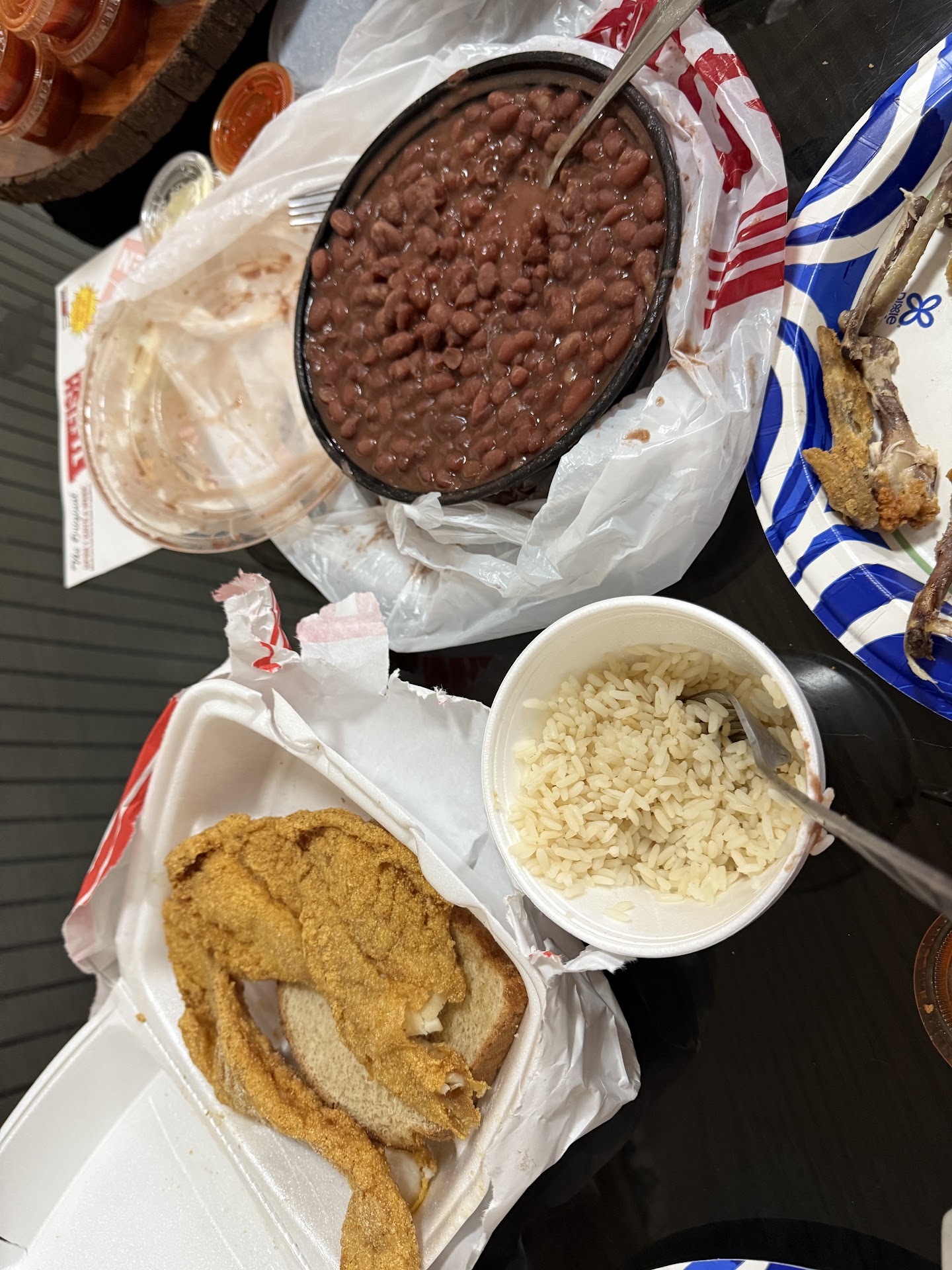 We went here last night, staff was very nice and friendly. The prices on their google menu are different to what they are now at the current location. pricing on products jumped from $2-13 per product which is a large jump. chicken wings were good and came straight off the bone. ordered 32 oz of red beans and rice (they gave us red beans 32 oz and 8 oz of rice) rice was gross red beans were plain, no flavor pastry’s are from a business in San Leandro we got red velet, chocolate, & peach cobbler cakes were moist & peach cobbler tasted like a can of peaches poured into a cup with a bunch of cinnamon put on top coleslaw was decent fish was decent