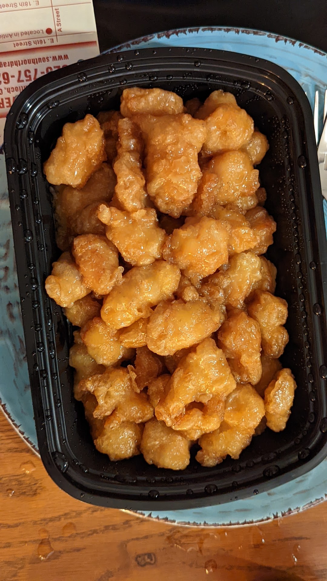 For those that are more adventurous, try their Running Egg and Shrimp over Chow Fun. It's an egg-gravy style over Chow Fun that's designed to be eaten right away but if you are an egg-lover, this is a must try. Or, opt for their version of Crispy Fried Noodle where the Crispy Noodles come in a box and you get a container of the sauce and toppings to pour on top when you are ready to eat. Another thing to try is their "Eight Treasure Tofu Special" with some white rice, or if it's in season, go for the comfort type food "Bitter Melon and Beef".