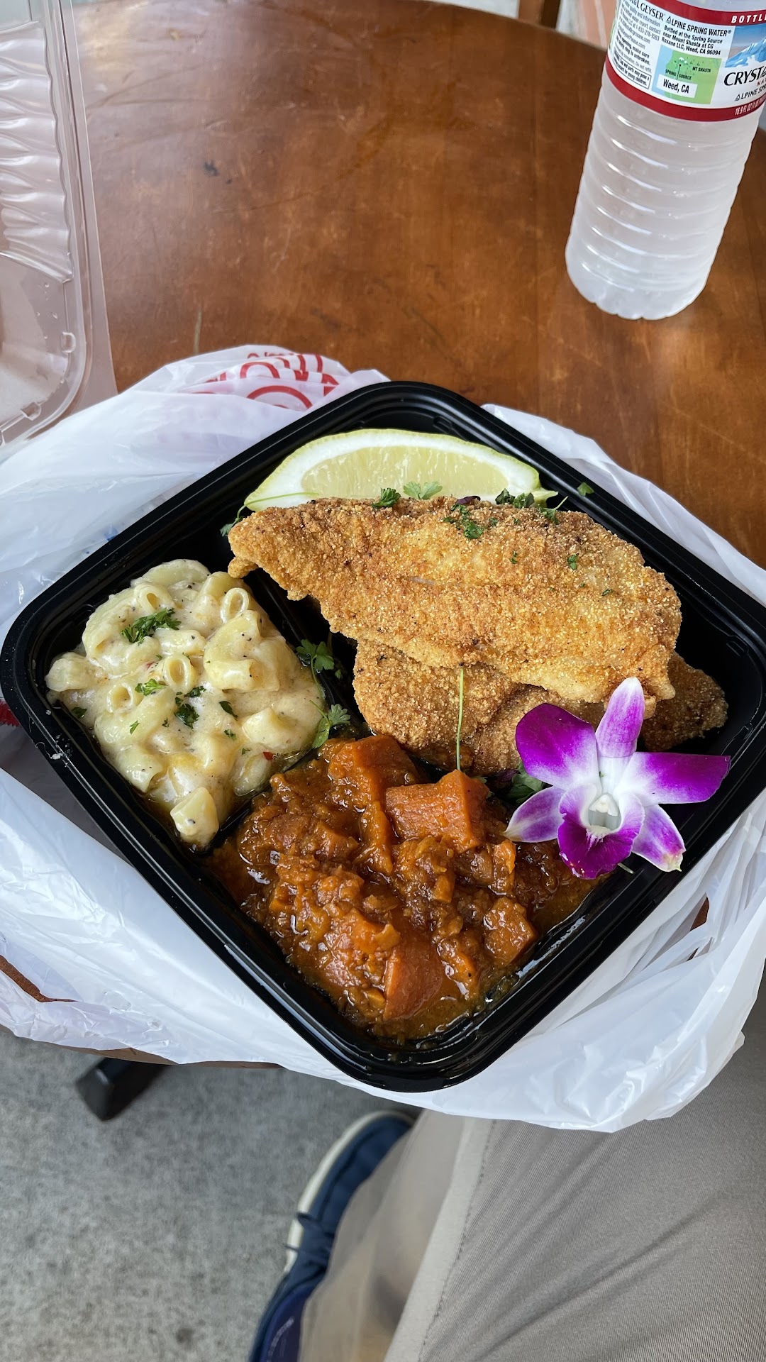 This place was so so good!! We got a lot of different things to try out this place. First that fish!!!! Omgeeeee it was so tasty 😋 then I messed around and tried the mac n cheese and when I tell you my face almost fell off because it was so dang good hahaha thats what I mean. We also tried those sweet potatoes and babyyyy let me tell ya it was the perfect blend of buttery goodness and sweetness that I felt like fireworks were going off in my mouth. Then we tried the Brussel sprouts and they were delicious too. We took some peach cobbler home and if my stomach didnt feel like it would spontaneously combust I would have tried it right then but I cant wait to see how it is. We took my husband home the oxtails and he loved every bit including the sides. We also tried that frozen lemonade with different flavors and it didn’t disappoint at all! We even ordered a seafood platter to go because everything was so yummy! If you want to eat good soul food you gotta try this place. One more thing I must say… the staff was amazing and they were so friendly and helpful. Gotta try it! And that cook Nicole had to have put her whole foot in that food because...
