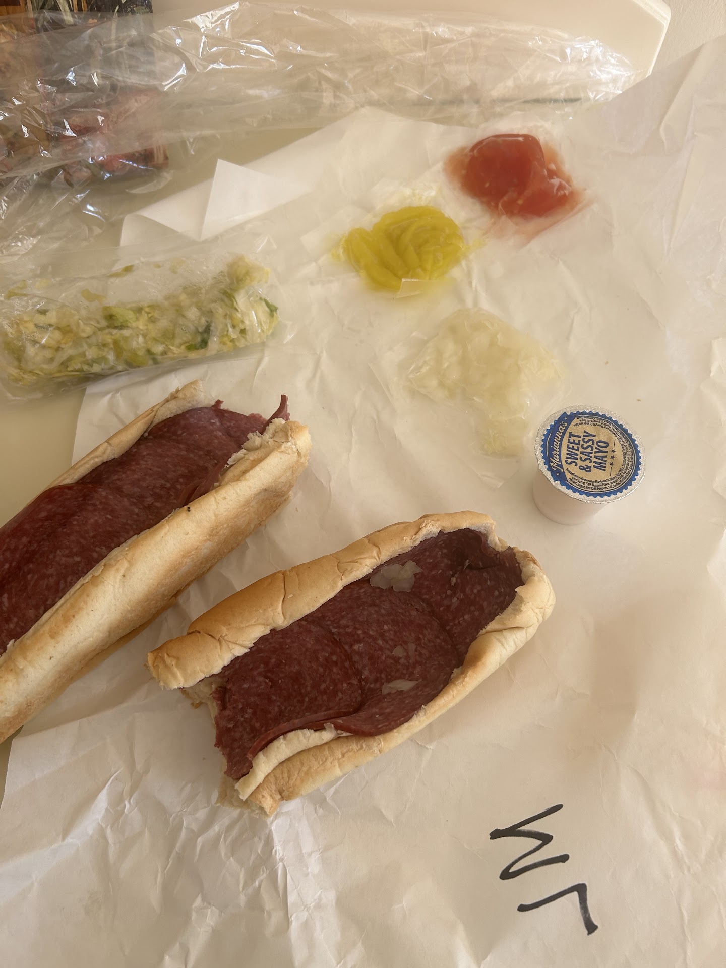 Read moreMeat was good. 4 teeny tiny tomatoes. Could not even cover the hoagie. 3/4 at most. Lettuce barely covered inside of roll. Such a shame the company has allowed the quality of the condiments to be so cheap. More roll than anything else. Apparently company no longer considers quality. Just the bottom dollar. At $7.50 each I can get 2 from Fishers packed full of stuff. Shame, shame,...