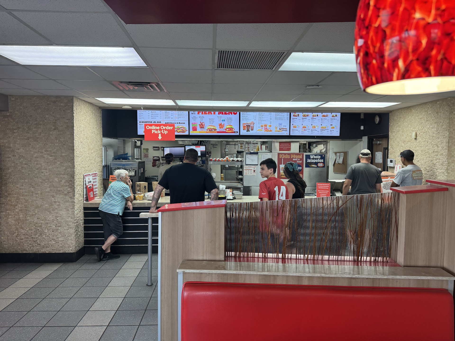 Read moreI rarely eat fast food; maybe a salad at Wendy's 1 x a yr. Now I remember reasons besides being so unhealthy; keeping Americans more obese than other countries! This drive-thru is extremely x 10 slow. I have been here 1 other time in 3 months. Btw, not 4 me! I was the only car ordering & when I rounded the corner there were only 2 vehicles waiting for their orders. After about 10 minutes, 3 packed bags of food came out for only 2 ppl ( in the car!) I thought OMG! That's a ton of garbage! Another 5 or so minutes for my turn. I paid, they handed me 1 bag of garbage food, & I was gone. Btw, my order was a double whopper (lettuce tomato only), large frys. My order cost about $13!! I can't believe this! I can't afford to eat fast food even if I wanted to! I talked with my family afterwards figuring the price of a family of 4 meals. Probably ordered more than I did too. Just add cheese & a drink x 4 & a family would pay at least $80!! The same family of 4 could dine out at a restaurant with a menu and all the " fixings!" This would include a server, choices of food, including healthy meals. Most restaurants offer different diet plans or just order salads with side dressing, or any meat meal not fried, breaded, etc. They offer green teas, sugar free healrhy drinks; even a glass of wine is better for some adults rather than a soda. The diner can be a nice place too! Most average bills could run about $50 + tax. Of course a tip is your preference. And during hard times, a family has some quality time during...