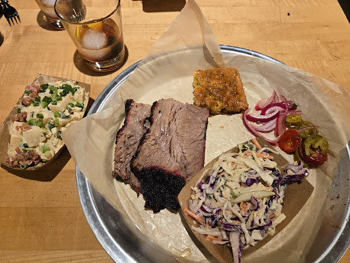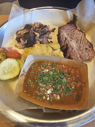 Read moreAt the time of this review the location is brand new and if today's visit says anything they have a bright future. I ordered the brisket sandwich with fun potatoes and a soda to wash it down. The brisket is juicy and flavorful complimented well by the condiments included on the sandwich. The fun potatoes were just that, fun to eat! They arrived with cheese, chives, and bacon bits. Pretty sure my palette missed an ingredient there but they are good. A few things to know. You walk in the front door that very much feels like you're waking into someone's home and are greeted by the line to order. The menu is on the wall and is easy to read. After completing your order you are provided a number and your food will be brought to you. The indoor dining area has two sections one I'll call the family area with bench seating and small tables. There is a group table in this area as well. The second section is nicely separated and it's the adult bar seating area. Similar but smaller than the family area. The outdoor seating on the patio is plentiful and welcoming with shade and a stage to host music and other venues. Parking is on a rock covered dirt lot. Suitable for all vehicles as it is well packed. I hope in future to see dedicated...
