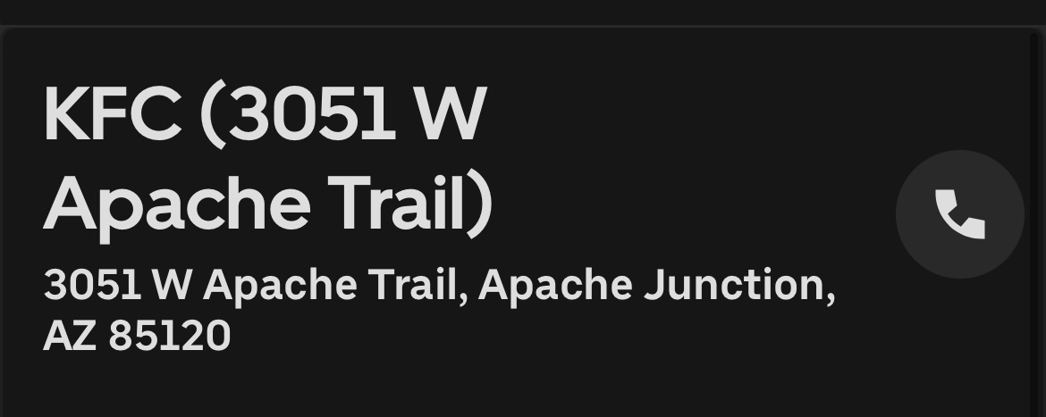 Ā Ā Ā Read moreWe have ordered from this KFC off and on for the last 3 years but never ever have we been treated like we were by the Manager named Martin and honestly by any Management personell ever. If I owned this location he would have been fired on the spot. Sadly two other employees working with him should not be included in this bad review.