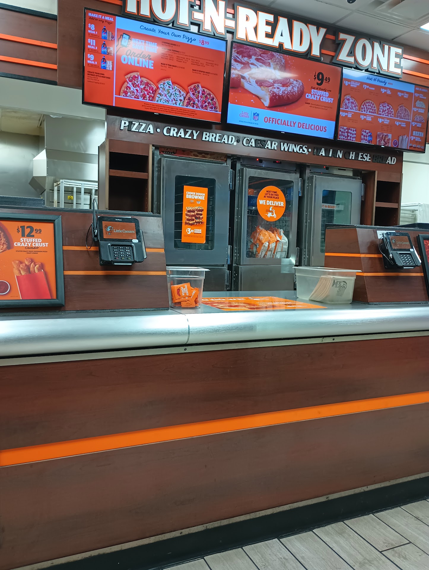 Read moreI recently went here to get pizza for the family and I am disgusted the atmosphere there was incredibly dirty and unprofessional it felt incredibly uncomfortable it was run by a group of lazy teenagers blasting tiktok on their phones and calling their friends to complain about the work it was not clean at all the floor was littered with dirty napkins it was incredibly sketchy the lady before me took her pizza back and asked for a refund because she said her pizza was moldy. I took my pizza anyway, and when I went to check it, it looked horrid it was thrown together with massive chunks of onion that were cold not to mention the dough was wet and practically see through and when i had asked for a refund they complained saying thats what all our pizzas looked like, i insisted on a refund and I was told not to waste their time next time! I was lied to about their being a manager until the conversation went further and I was finally told I could have a refund i went to grab my card and 2 homeless people went in after me and took it for free I've been going to this little ceasers 1984 safe to say I will not be going back to this one and...