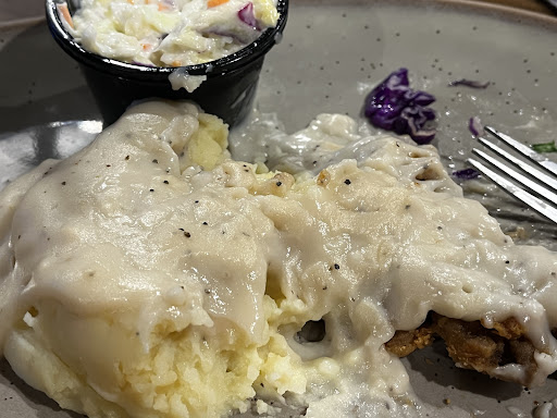 Read moreWe went on a Sunday at 4:30. Since music was noon to four, we were seated quickly as the music crowd had just left. But the dinner crowd swiftly started pouring in. The drinks were cold, my husband would’ve preferred a few more choices on draft beer. I had the prickly pear margarita, which was good. The fish and chips was delicious, as was the chicken fried steak. We were not impressed with the golden sauce on the chicken wings . Really really enjoyed the chicken fried steak, you get to pick two sides, but who wants two carbohydrates when you’re already getting a chicken fried steak, smothered and gravy? Sincerely believe that Managment needs to have a vegetable or salad as one of the choices for your side As someone who was in the restaurant business for over 20 years, as a training manager, I have to say the highlight of the night was Tatum the hostess. This young lady was doing it all, she was busing tables, seating people, and if she was taking a large crowd back, and somebody who walked in the door, she stopped look over, smiled at them and said she’d be with them in just a minute. That young lady never stopped moving, she was so efficient, never once did I see her on her phone, like I see most hostesses at most restaurants these days. Managment here would be wise to give her a promotion or lose her. Our server was just OK, we kept pushing our plates towards her once done dining, but she never once removed them from our table.