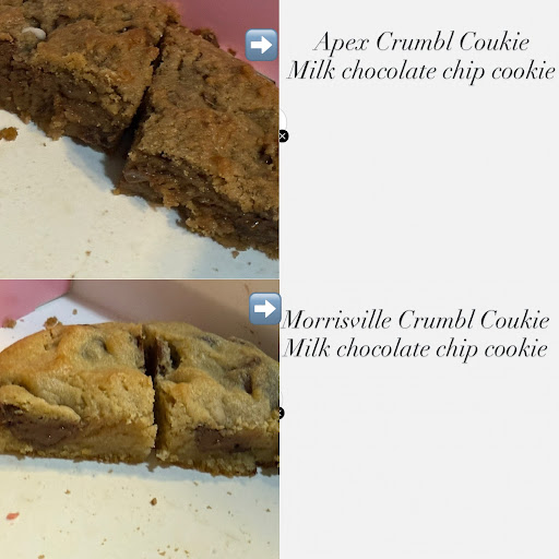 So went the cookies taste weird I thought it was another mistake; so I drove back because my only favorite cookie is the milk chocolate chip cookie. But she ignore my complaint. So I drove 7 mile to get my milk chocolate chip cookie at the Morrisville location and it tasted just like it always did ( that buttery taste and aroma). So I show the picture to the Morrisville store and they can’t even figure out what it was because it doesn’t look like something they have. So I went back to show them the new cookie from the Morrisville store and the first thing the server said was Oh My God and a sign to another server that was there and just looked at me and said Okay! That was it!