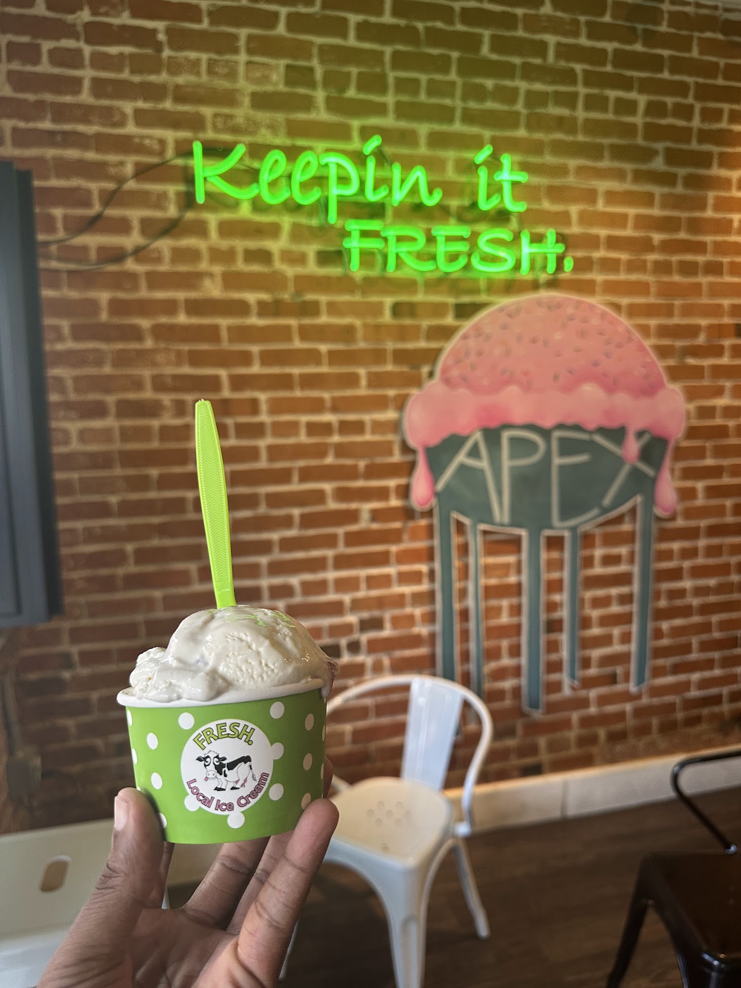 Read moreApril 9, 2021 - Strolling Salem Street in Apex ( NC) what better way to usher in SPRING then with several scoops at the Fresh Local Ice Cream! Perfect night to taste Salty Carmel Fudge, Berry Crumple, and Coffee Chocolate Crunch ! âFreshâ ingredients swirl & tickle the tastebuds !