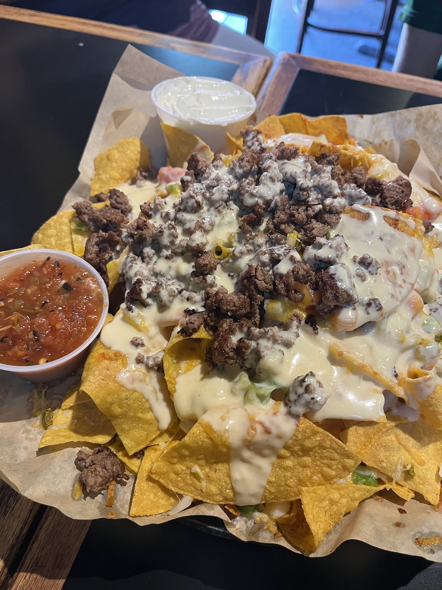 Nachos: 7.6/10 – A fantastic plate of nachos loaded with queso, seasoned chips, and plenty of beef and chopped jalapeños. Every bite was flavorful and well-balanced. The portion size was enormous—enough to feed a group—so a half-size option would be helpful for smaller parties. The price felt a bit high but was justified by how much food was served.