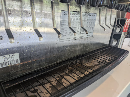 When we got here at 5:00pm, we thought the place was closed because of how empty it looked. We should have taken that as a sign. There were only two guys on staff. Up front, I noticed how sticky the front counter looked. I got their two-piece chicken combo with white meat, and my wife also got the two-piece chicken combo but with dark meat. We also got a children's combo for our daughter. The total came out to $24.64. They gave us our cups and we went over the soda fountain. The counter over by the fountain had soda rings and spills all over it. The soda fountain itself was disgusting. I work at a place with a larger soda fountain, and I know that they take a lot of cleaning, especially because mold grows up inside of the spout where the soda comes out. Based on the outside of the machine, I can guarantee you it's nasty inside. We opened up our boxes of food. My chicken breast was mostly bone (even though there is no bone in a breast) and the chicken wing was tiny and barely had any meat on it. What little chicken was there was overcooked and a little dry. The chicken nuggets for my daughter were mostly breading with a little bit of dry chicken inside. The best things about the meal were the side of gravy (which I had to go back up front and get because they left it out of our stuff) and the green beans for our daughter. Kfc excels with the sides. But the actual chicken is most definitely overpriced. We can get an eight-piece fried chicken from food Lion for much cheaper, and the chicken tastes better than what we got at this KFC. The two employees stood around talking, even though clearly there was much to clean up. We drove past our KFC/Taco Bell to come here because we thought maybe they would be better being focused on one thing. We were wrong. Not coming...