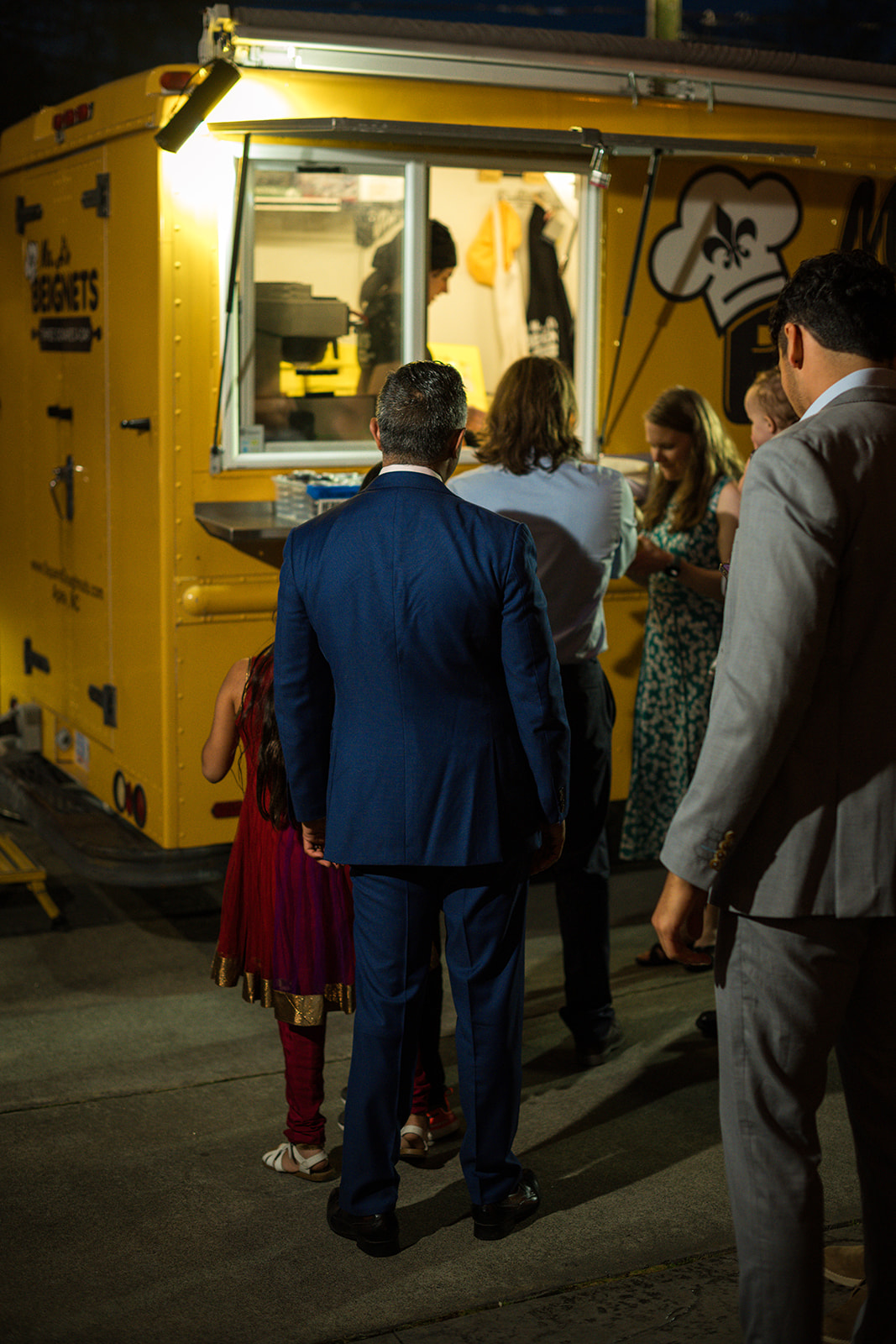 Once the wedding was over, and Mr. A was closing down his truck, we went over to talk with him. While talking with us, he made a special to go box for us to take home to our 3 year old daughter. He made finger-beignets. Mr. A told us EXACTLY what to do to reheat them this morning, and he was absolutely correct in how to do it. My daughter loved having them for breakfast!