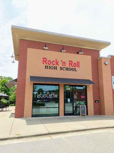 Small spot that's only been open for about 6 months. It shares space with music studios for lessons on the end of a strip of other places set back from the highway. A few window sets are inside, but more table seating outside. Your traditional coffee type selections, in addition to some musical artist inspired drinks like the Elvis and the Ozzy, which I ordered. Both white and regular chocolate in a latte. Really good, not too sweet. I'll definitely be back to sample more flavors before leaving the area in June. Oh, they're having an open house on May 20th.