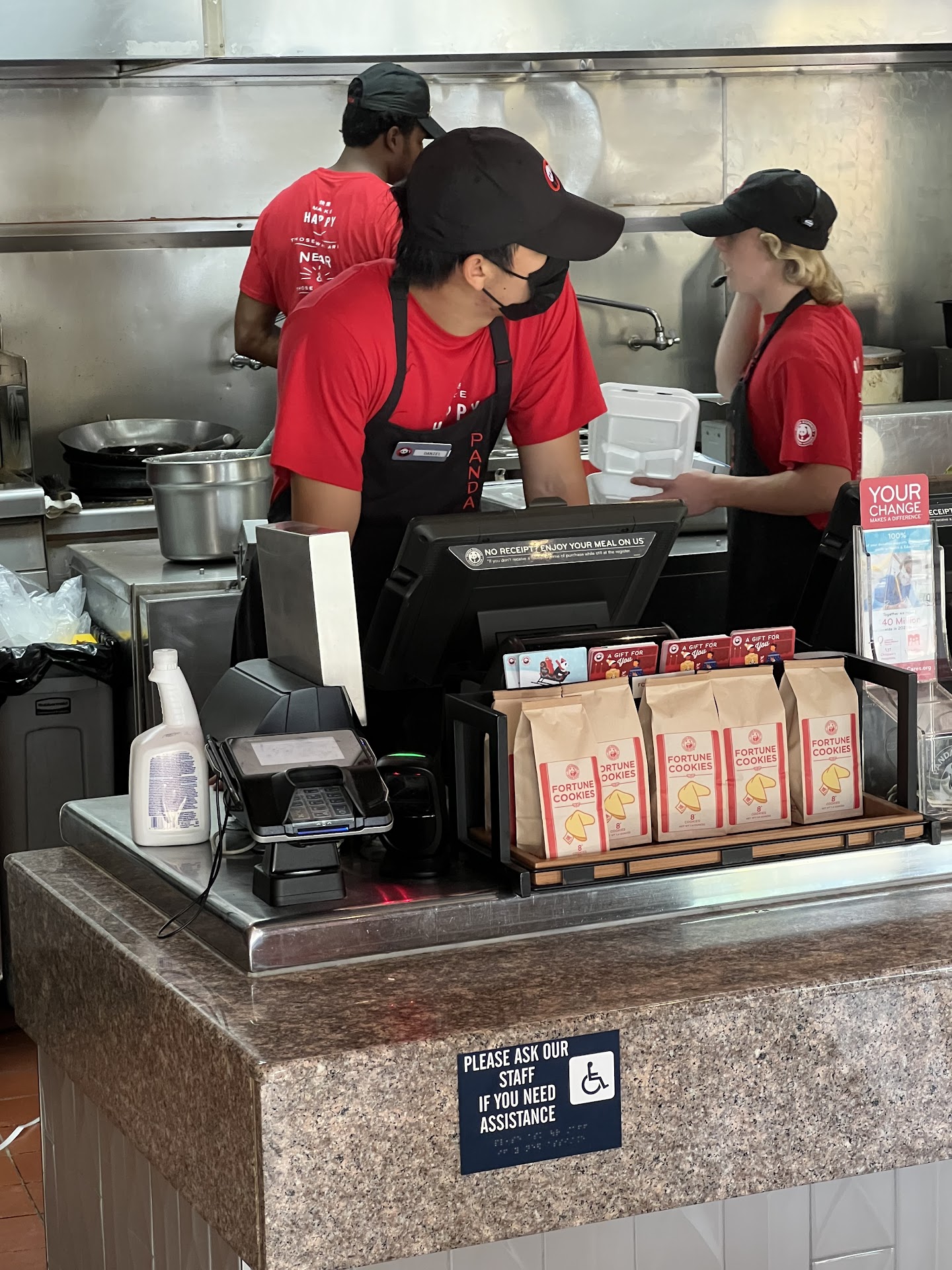 I came in on a Saturday evening with my husband and 2 children. I think the restaurant itself is nice inside and the food was pretty good. It’s incredibly cold in there though-the coldest restaurant I’ve been to in a long time or perhaps ever been to.(It’s pretty uncomfortable even with a hoodie and pants on. They definitely need to adjust the temp. It was enough to make me not want to come back and dine there and my family agreed.) The staff working up front was fairly awkward overall and didn’t seem very people friendly for the most part (and there were several people up there working.) If I were a manager or owner of a restaurant, those are not the employees I’d pick to have up front to greet and help customers. They don’t give you enough of the food portion you ask for (example-we ordered a plate of half orange chicken and half honey sesame chicken and they barely put a spoonful of the honey sesame on there. It was literally just a couple of bites worth.) You have to unfortunately and uncomfortably ask them to please put more on your plate when you shouldn’t have to. Their noodles are LOADED with onions to the point where there’s hardly any noodles and it’s mostly just the onions. I also had to ask for some fortune cookies because they didn’t remember to give us any as we checked out. Towards the end of eating our meal, we encountered two teenage boys sitting diagonal from us who were literally continuously and obnoxiously vaping INSIDE of the restaurant. I got up and approached 2 employees who were standing together to inform them of what was happening (no one was in line to be helped at that moment so it was a perfect opportunity to speak to them.) They again were awkward. One of them seemed hard of hearing so I stopped trying to tell both of them and just focused on the one who could hear me. She rudely and strangely didn’t respond to me about it; she just looked at the boys and then looked back at me and then down at the food in front of her to stir it. It was weird and unprofessional, especially because these were adults that were working and capable of communicating and responding in an appropriate manner. Anyhow, I went to sit back down with my family and the staff never said anything to the boys. It was a...