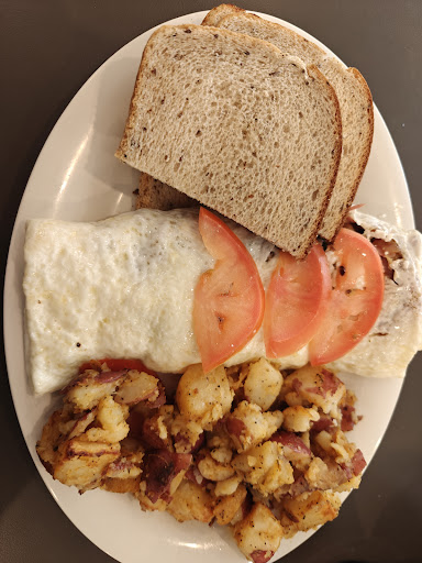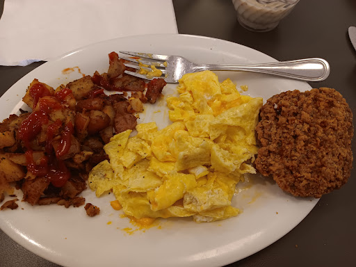 I've been here several times since they opened, always a decent experience. Not today, I came in to a "hello" and a smile, to a dinning room with 3 other people seated in the whole place so not busy at all. I was seated, ordered and given a drink. My order came out wrong, couple pretty simple requests. Home fries well but not deep fried and dry toast. My food came quickly but the home fries were deep fried and toast buttered as well as the bacon being under cooked. Really no big deal, I brought it to the waitresses attention and she took it back to the kitchen. Bacon came back burnt, toast not replaced and she brought some new home fries which were fine. Still no big deal, so I start to eat and end up pulling a 6-8 inch hair out of my mouth.Very gross but no need to ruin anyone else's breakfast, like I said I've been here before and the whole place is always very clean. So, I move my plate to the side of the table (and just so we are clear I am bald, completely shaved head) so she can see it so she knows to stop by. I showed her the hair and quietly told her after she asked where I found the hair that it was in my eggs. She was very apologetic and asked if I was done and I told her "thank you, yes I am done". I was not even halfway thru my meal but it appetite was gone for sure. Definitely not her fault, it was a light colored hair and I didn't even see it until I felt it in my mouth. I am flipping thru my wallet looking for cash for a tip, because like I said it was definitely not on her, so I am about to drop a $10 on the table when she comes back and hands me a check discounted $1.05 and walks away. So I got up and walked over to her and asked if this was correct and she said yes, I got a 10% discount, lol. The tab was only a bit over $10 to start. Mind you its not the $10, its the principle. I get a plate of food with a hair in it, stop eating because who wouldn't and send the food back and get a dollar off. I wont be back, accidents happen and not the end of the world but how you handle those mistakes matters and this was...