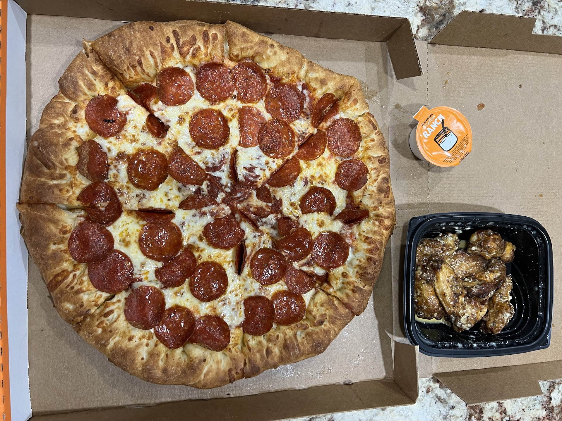 This is my family's go-to spot for pizza. It's an inexpensive and quick meal for the times when you just want a good, quick pizza because you just don't feel like cooking. It's not gormet, but it's really good. I have never had a bad experience with this location. I use the app every time to order because it is super easy and I can reorder our go-to meal of one super-bestest cheese pizza for the kids, and a super-bestest pepperoni for my wife and me. I sometimes get the deep-dish because it is awesome, but my wife usually prefers a normal crust, so happy wife happy life. I recommend the white sauce pizza and the Hawaiian for when you crave it. Never had a bad pizza here. Consistently great. Another reason why I recommend the app is that I can place an order before I leave work or home, and the pizza is ready when I get there - typically within 15 minutes. Friday nights can be busy during the dinner rush so it sometimes takes up to 30 minutes, but 20 to 25 minutes is the norm for Fridays. The app lets you know what stage the order is at, you just need to refresh your screen. This is super helpful on their busy nights. They also have an automated machine that you can put your code in from your order, and it will open up and you can grab your order without dealing with waiting on the clerk to give you your order on a busy night. Just grab and go. Super convenient! This is why I love this place so much. Double check that you get all of your extra items if you order them because there was a couple times when I was missing the garlic sauce that I added to the order. I showed the clerk my order on the phone and they gave it to me with no hassle. Again, I have ordered here many, many times and that has only happened twice, but I always double check before I leave. The location is well lit with plenty of parking and easy access. With two restaurants next door, there are always people around so you feel safe going here. This is a pick up location and not dine-in. There are four chairs in a rather small lobby area so use the app so that you are not standing around waiting for your order. Consistently decent pizza for a great price and fast service. Use the app to significantly speed up your order, and you won't be...