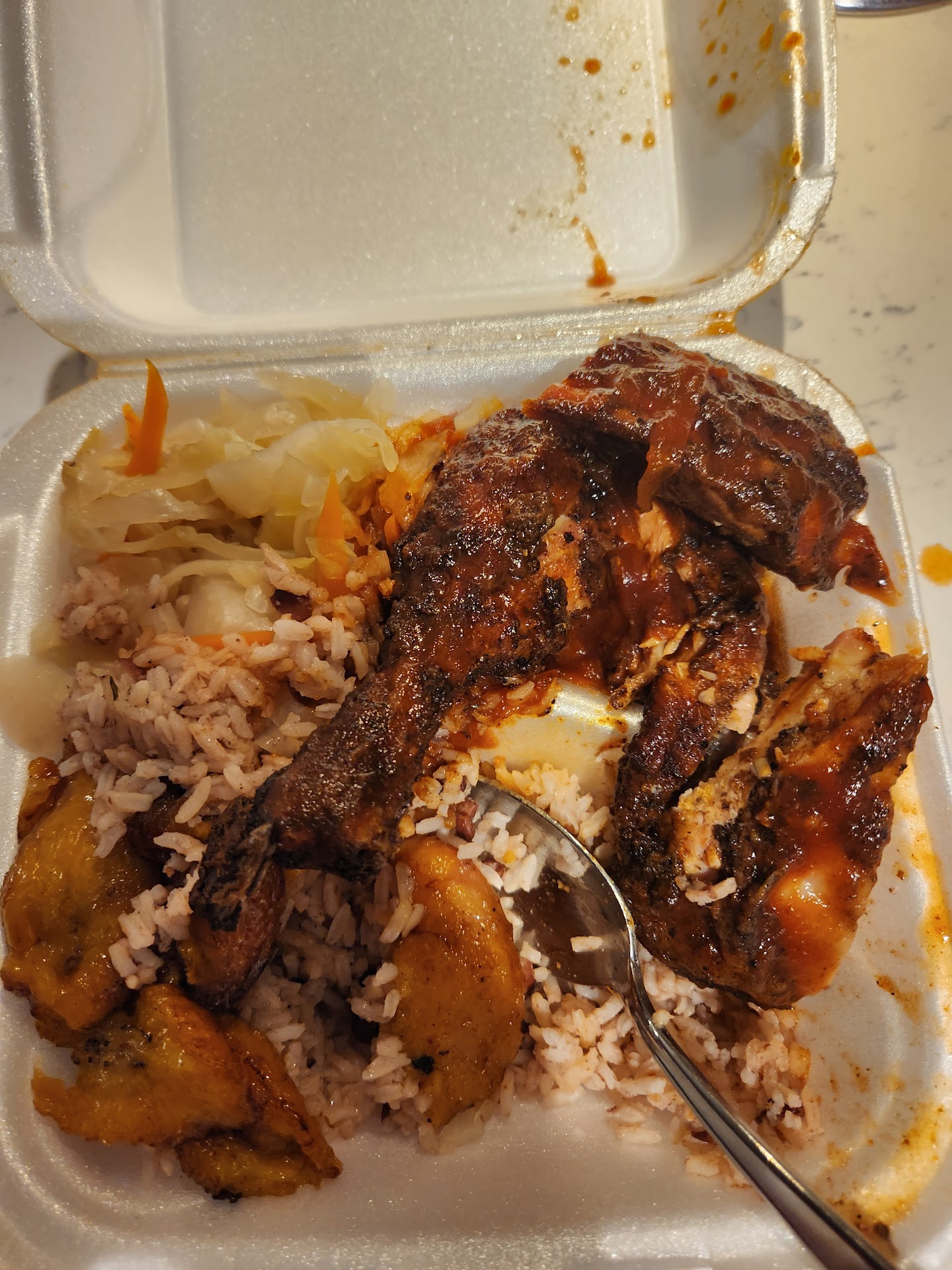 Read moreLiving in Miami probably makes my opinion very biased, because I’m surrounded by some of the best Caribbean food in the United States. With that being said, I thought it was unacceptable that most of my food was barely warm, If not cold. My plantains were cold in the middle, and I ordered the fried chicken, which technically had some of the best breading I’ve ever tasted in my life, but the chicken wasn’t even warm. Now the rice and peas should be a centerpiece of any Jamaican restaurant, but I didn’t taste the coconut milk, the rice was mushy, and there was only like two peas in the whole dish. I love supporting local restaurants and went out of my way to try this small local establishment because I believe in supporting local, but I would be concerned about the food not being proper temperature. With that being said, I ate all of my food because I’ll eat anything, anywhere, any time and never seem to get sick but those with a delicate stomach should...