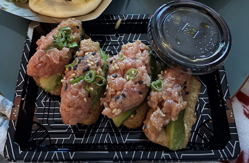 I also got the Korean Buffalo Chicken Bao (Korean Buffalo Fried Chicken, Sour Pickles, Scallions, Togarashi, Sesame Seeds). Very good flavor from the chicken, and with a little patty that small, the crunch-to-meat ratio was very nice. But the bao bun itself was a little dense and doughy, a far cry from some of the other big bao players in town.