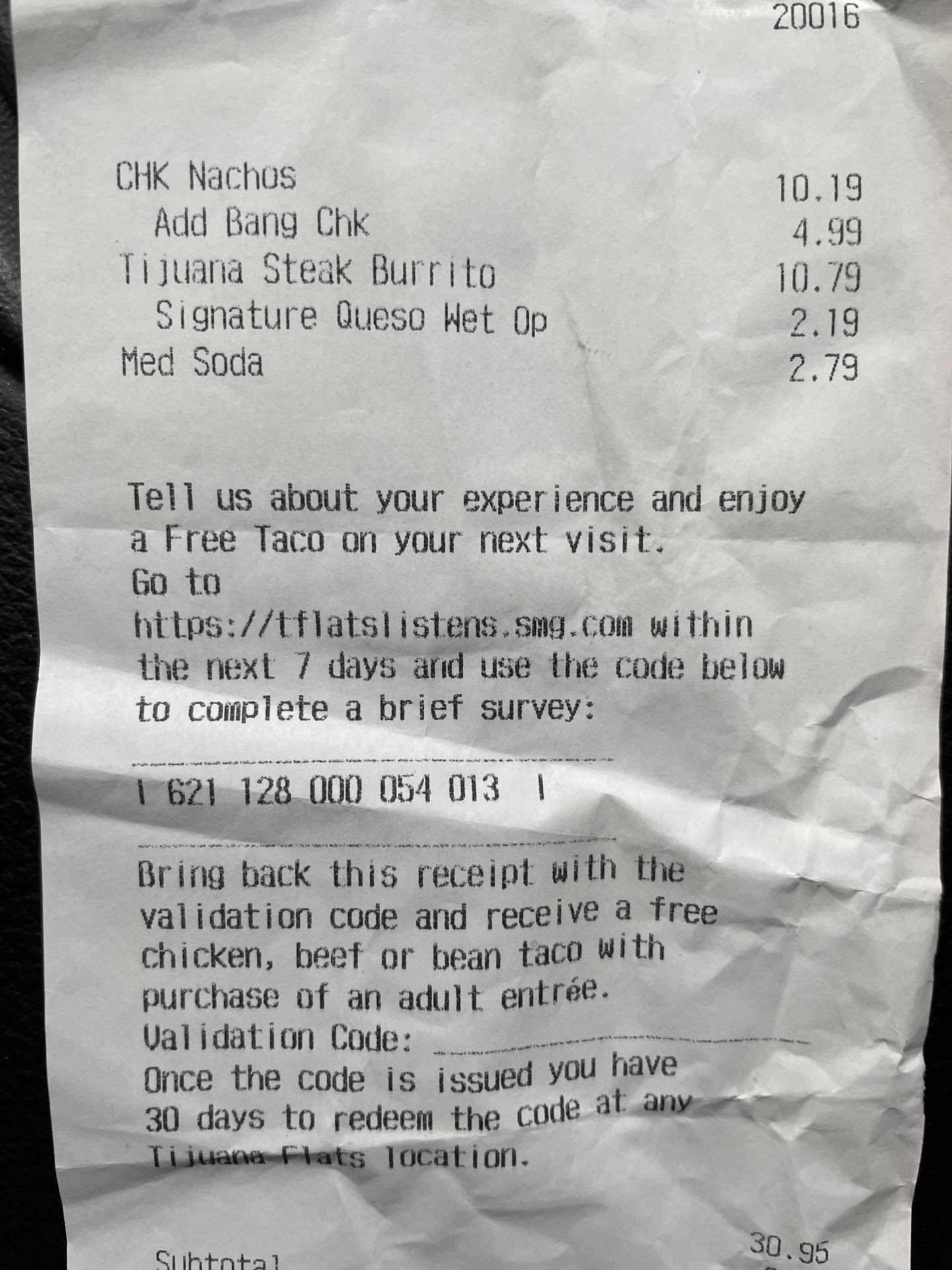 This time I'm taking out and I had one request, no jalapenos. I said it at least four times.