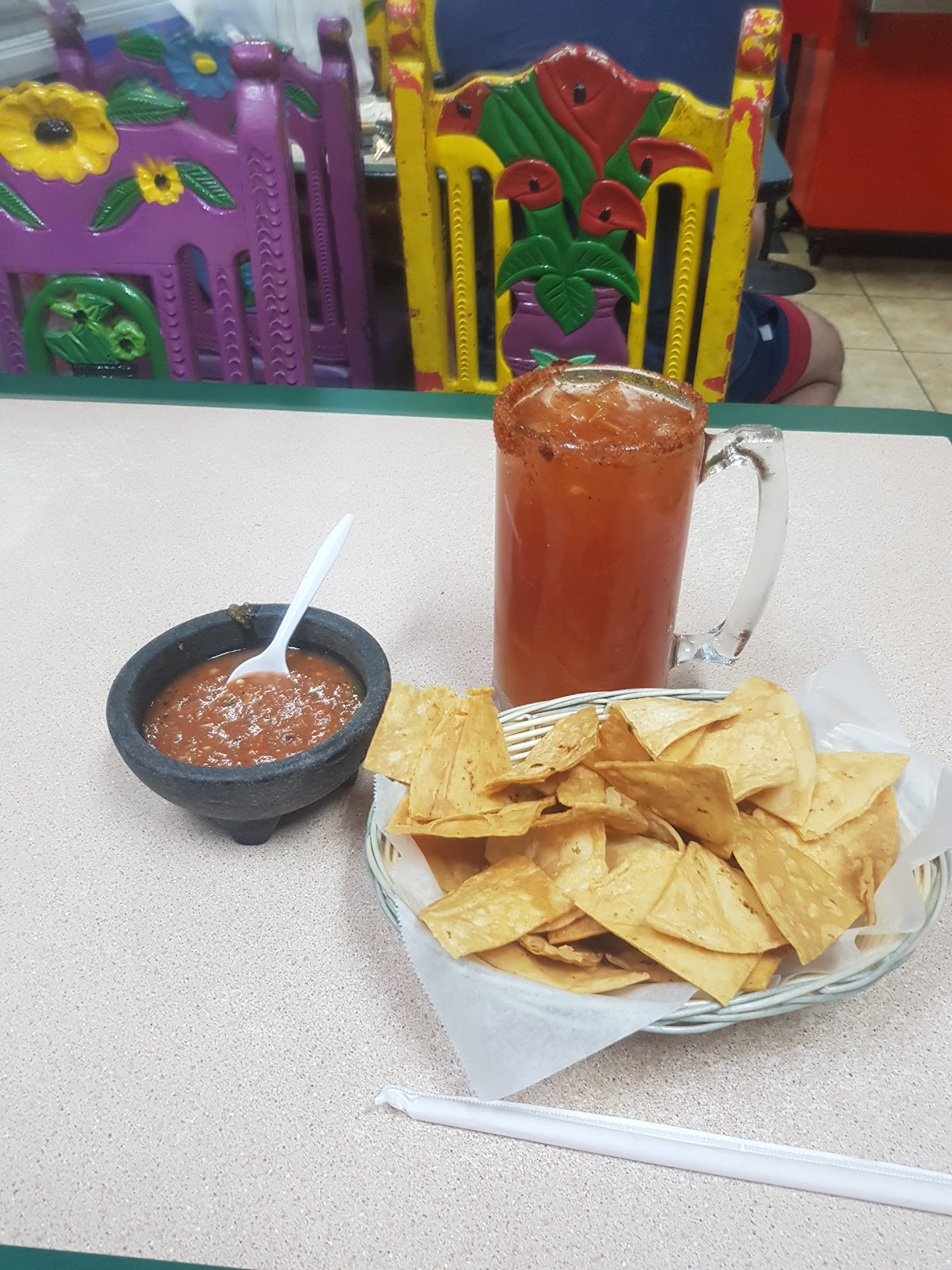 The horchata agua fresca tasted like the kind made from those processed powder filled pouches and was overly sweet.