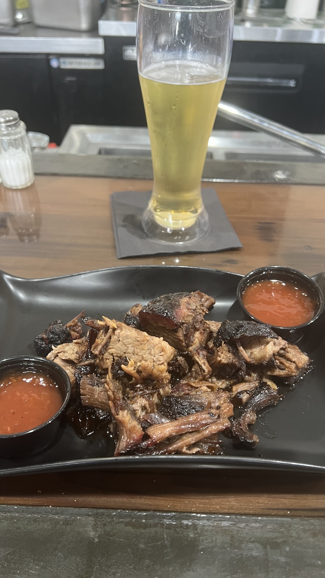 Id heard this place was decent but i heard wrong! Took 10 minutes to get seated with no one else at the door. Another 15 minutes for anyone to take our order. Food came out fairly quick. I had a brisket sandwich. Once i opened the sandwich i found two tiny slices of brisket i mean less than 3oz. I waited to ask the server if this was all i got for $13 and if so could i order more brisket to put on it. No server ever came back. Got tired of waiting after 10 minutes or so and ate the sandwhich, id tell you how the brisket was but there was so much more bun than meat all i tasted was bread. My drink was almost empty when i got my food and stayed empty long after we finished eating. Never did get checked on by a server. Went to the register and waited another 10 minutes for somone (the owner) to finally ring us up. When i informed him id not be returning to his establishment his response was a dirty look of indifference. Servers looked burried with an only half full dining room and seemed to work very ineficiently making trip after trip to the same table instead of making rounds as they should Poorly managed. Poor service. There were plenty of chances along the way to make our experience there a decent one and this place...